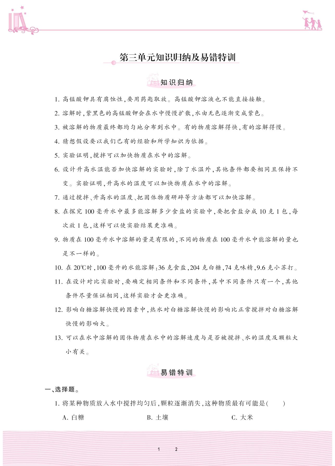 2020上册三年级科学大象版 第三单元知识归纳及易错特训