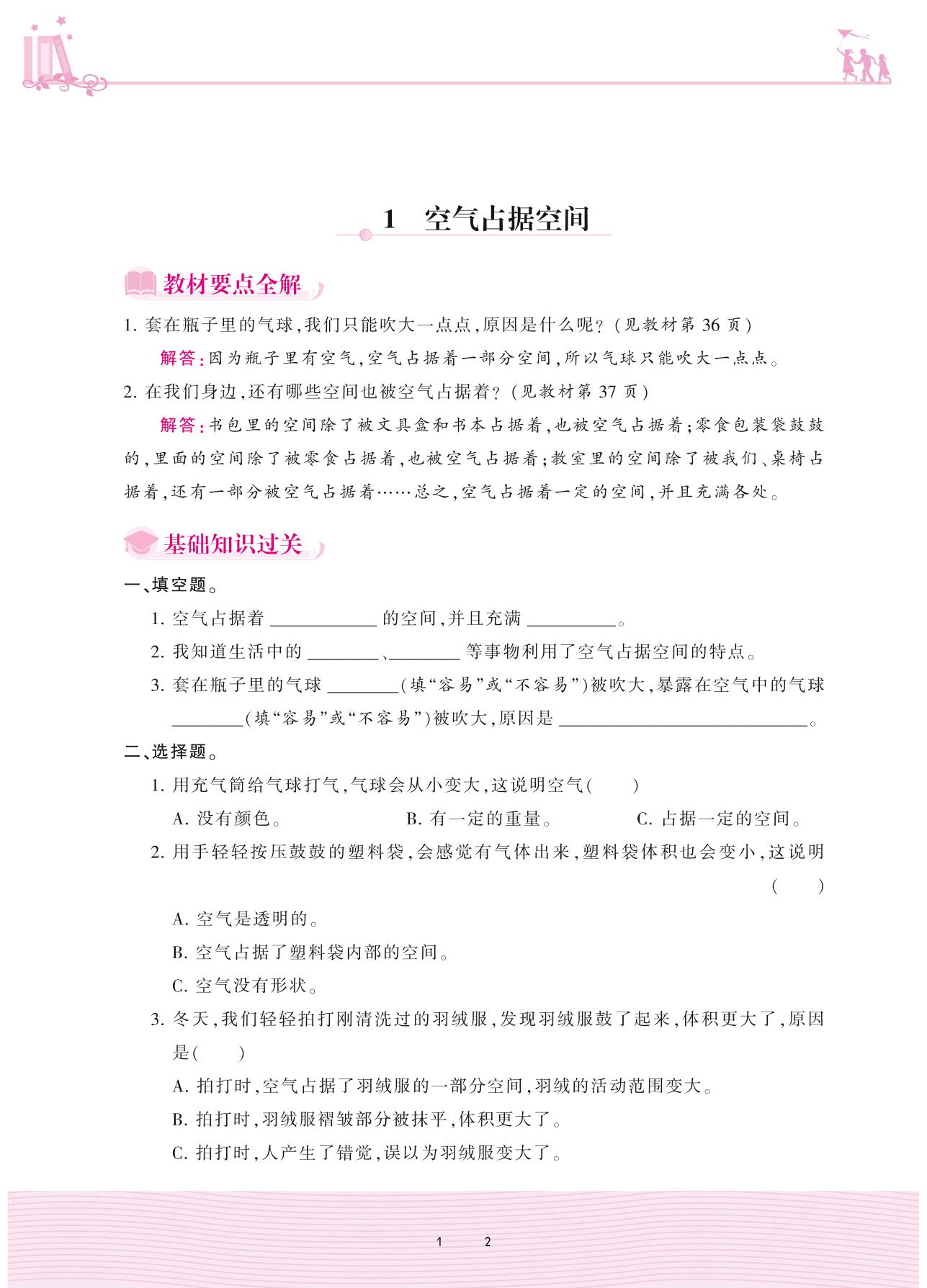 2020上册三年级科学大象版 第四单元 流动的空气——1 空气占据空间