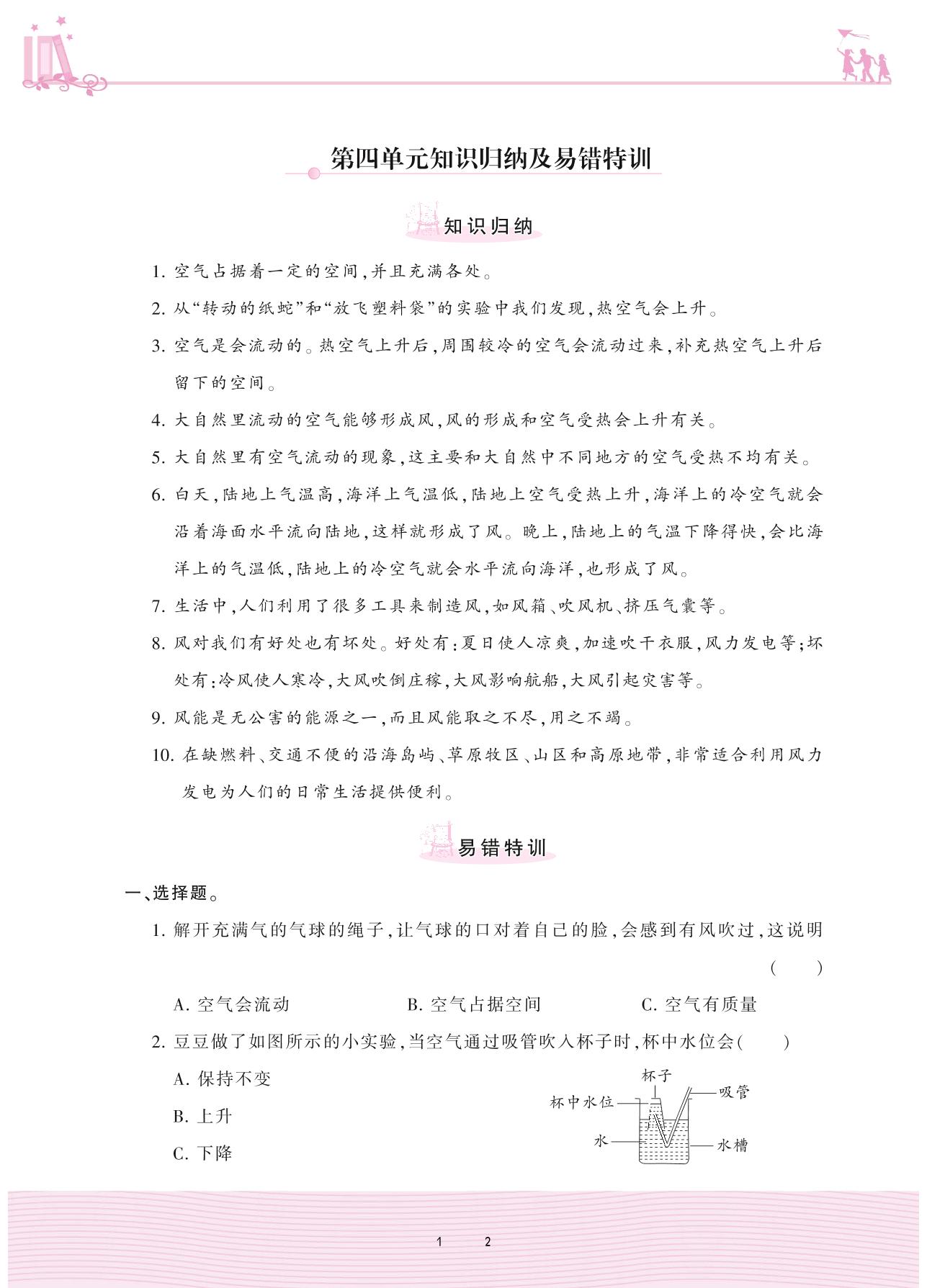 2020上册三年级科学大象版 第四单元知识归纳及易错特训