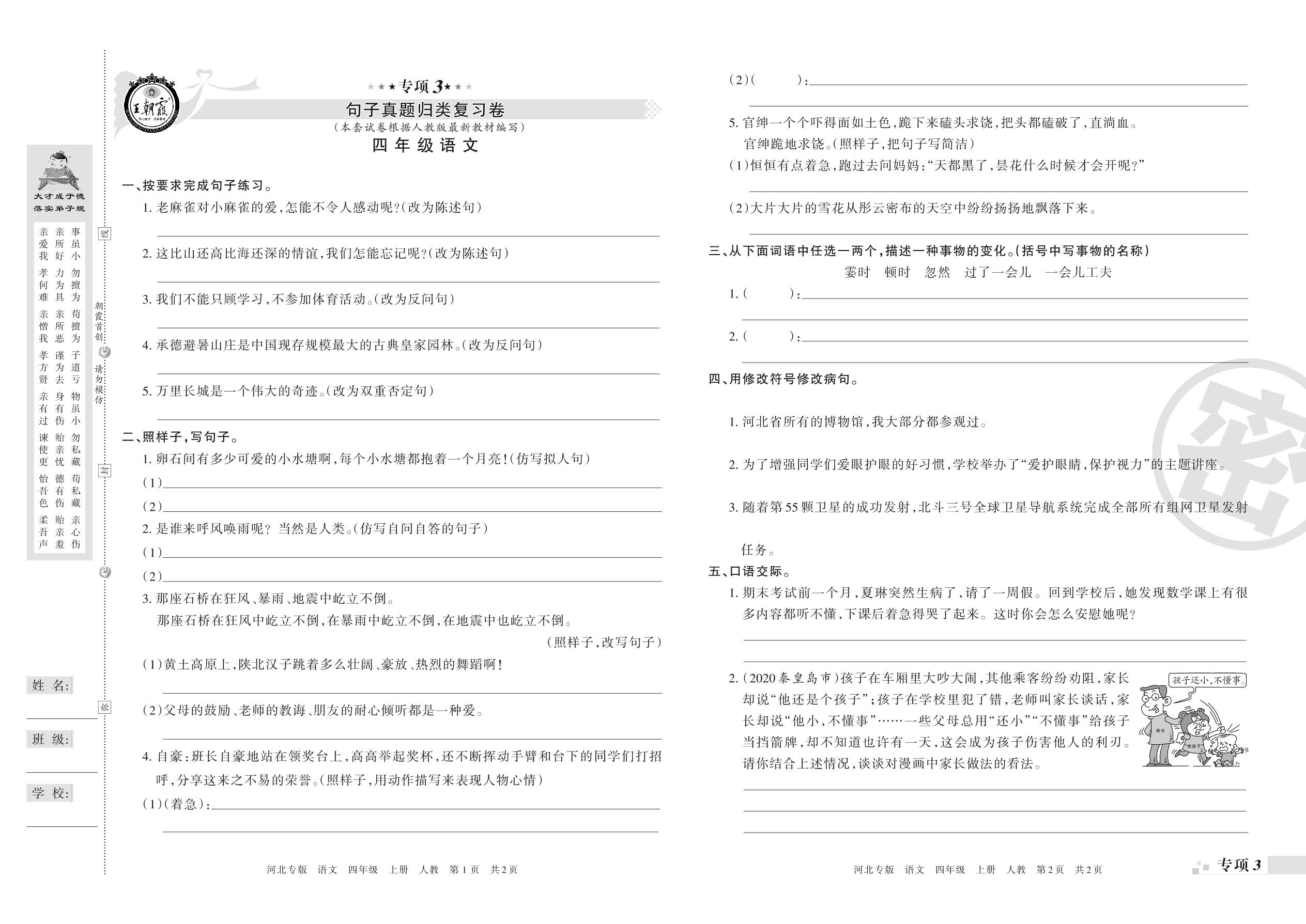 四年级语文人教版上册专项卷