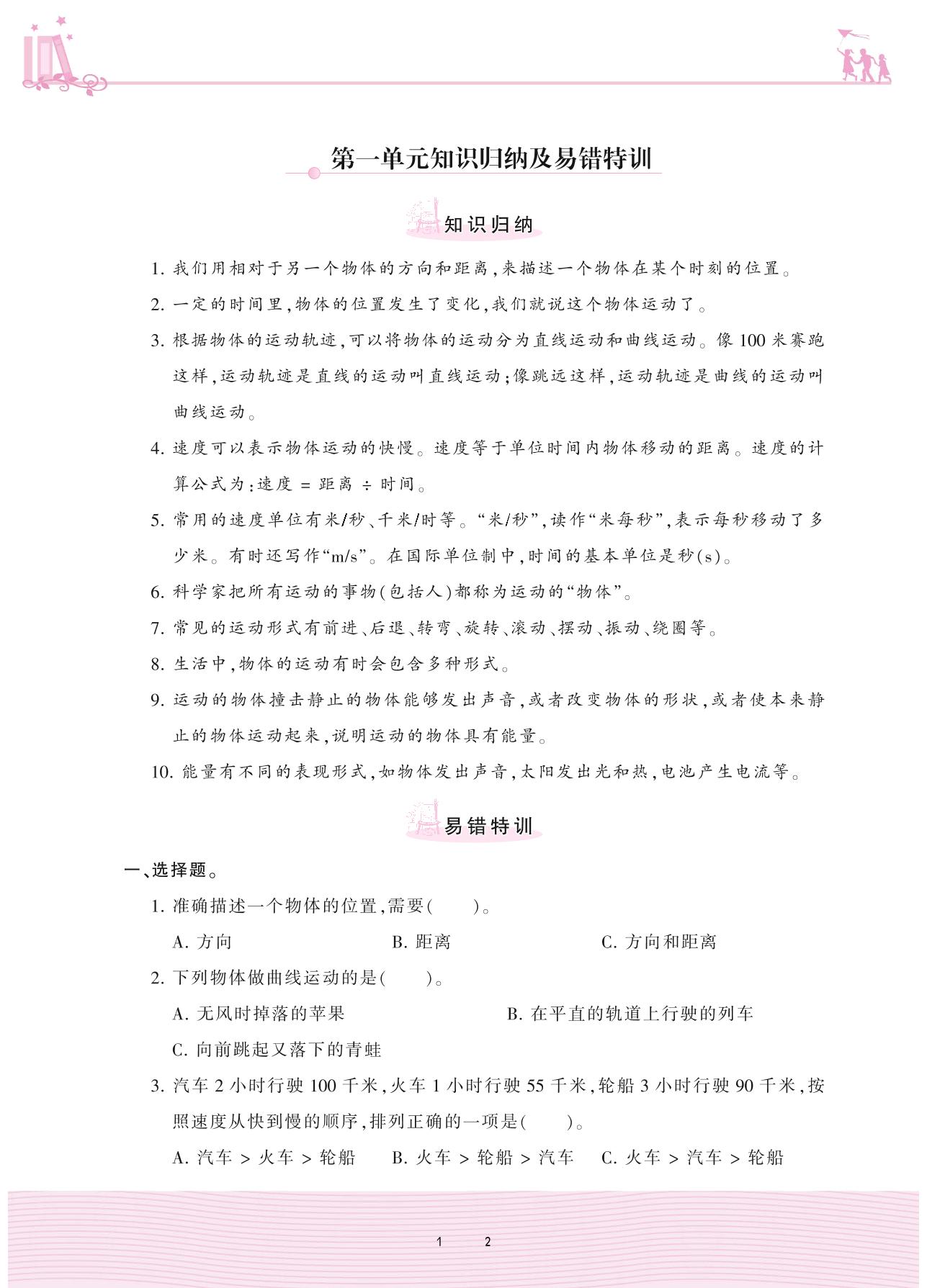 2020上册四年级科学大象版 第一单元知识归纳及易错特训