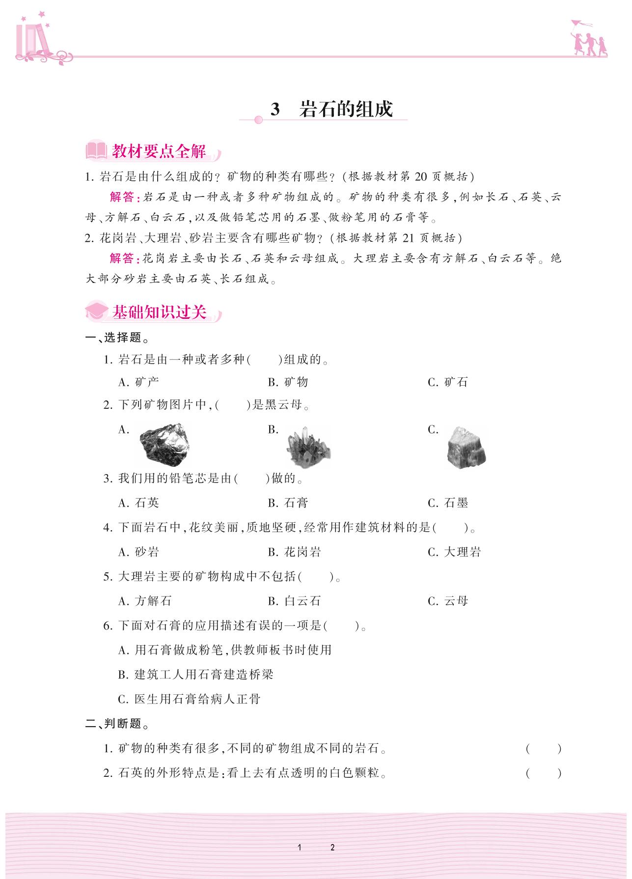2020上册四年级科学大象版 第二单元 岩石与矿产——3 岩石的组成