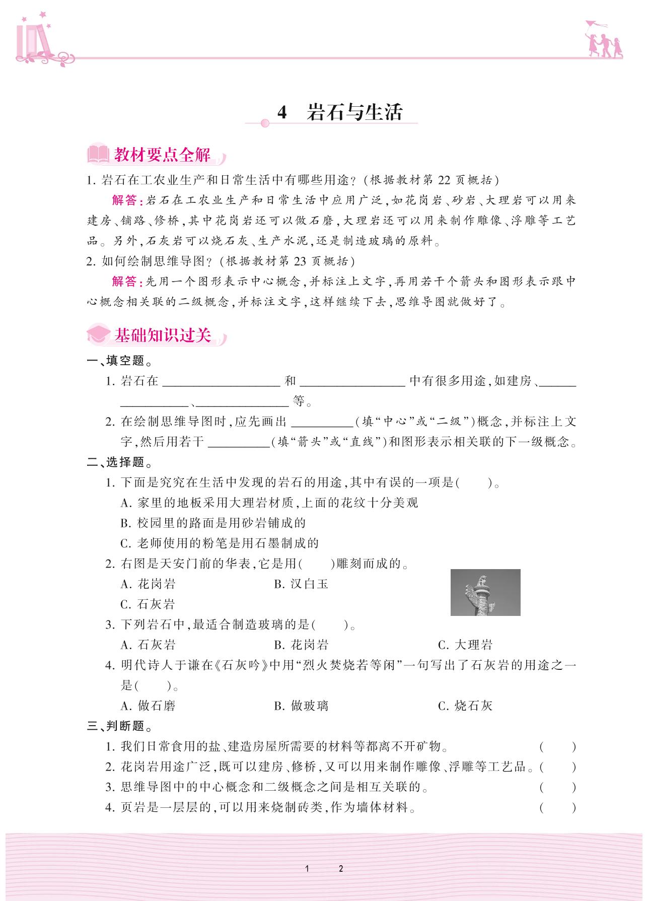 2020上册四年级科学大象版 第二单元 岩石与矿产——4 岩石与生活