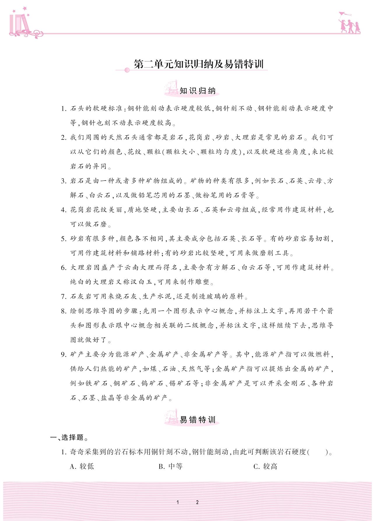 2020上册四年级科学大象版 第二单元知识归纳及易错特训