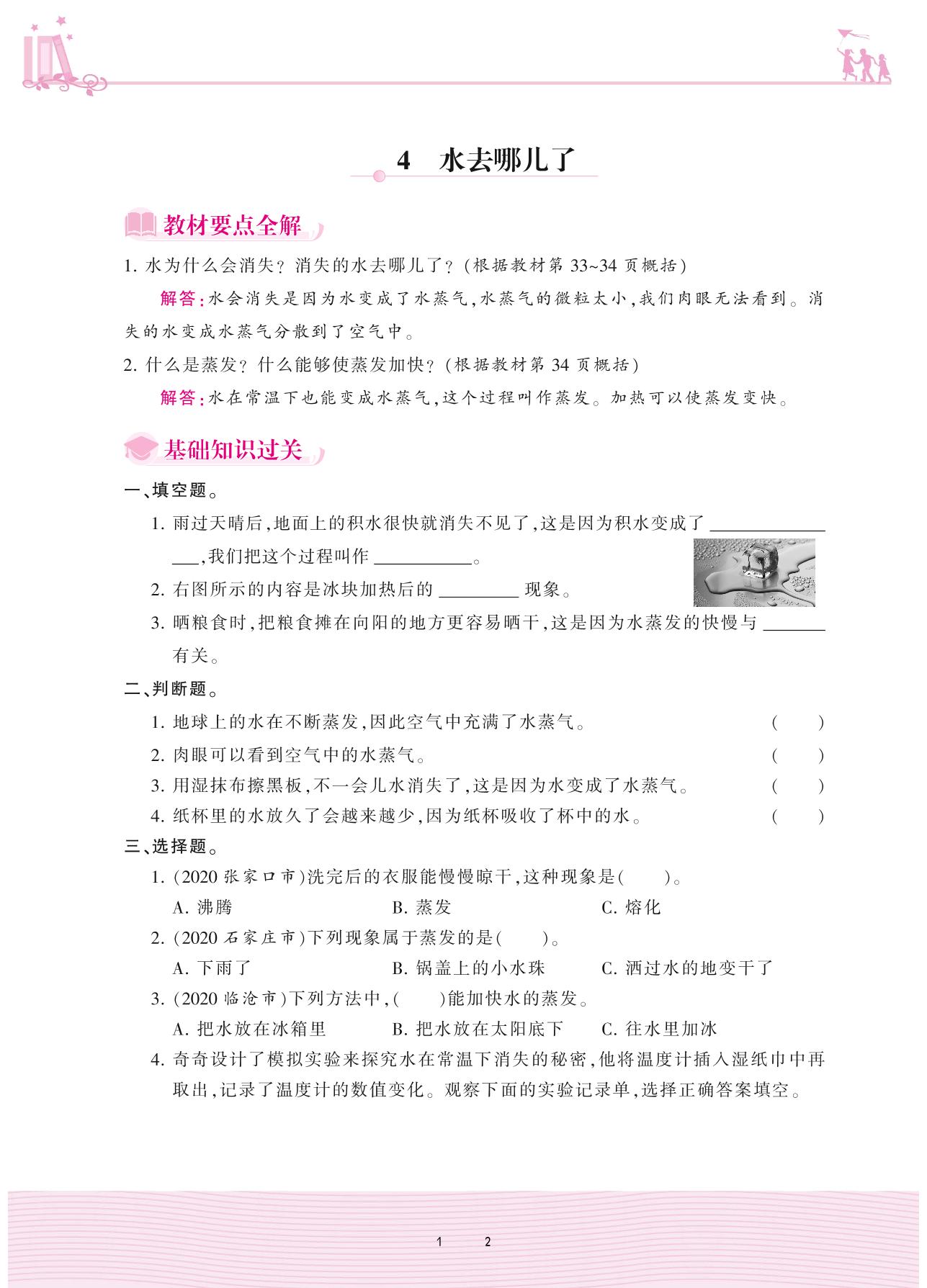 2020上册四年级科学大象版 第三单元 冷与热——4 水去哪儿了