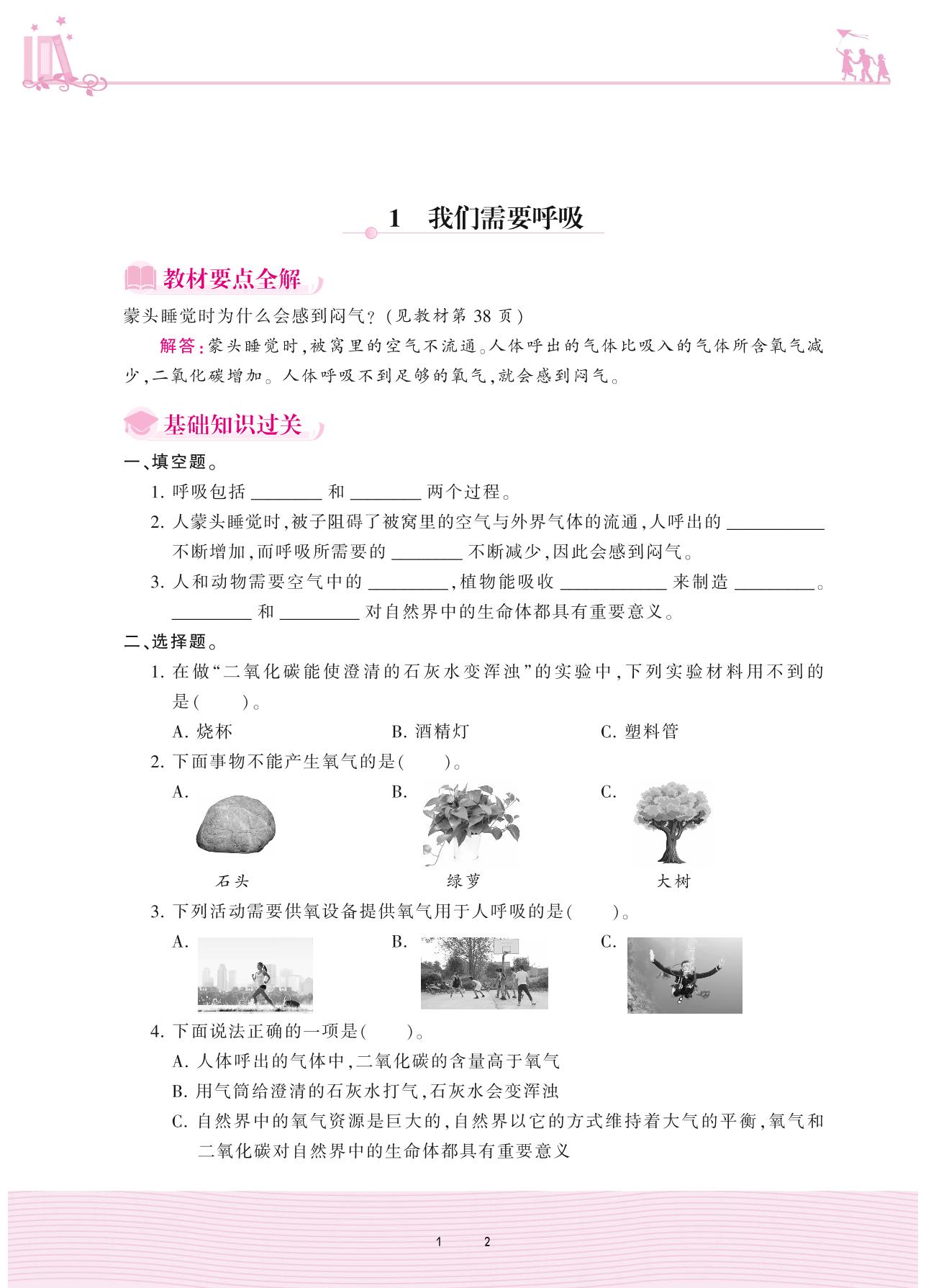 2020上册四年级科学大象版 第四单元 人体的呼吸器官——1 我们需要呼吸
