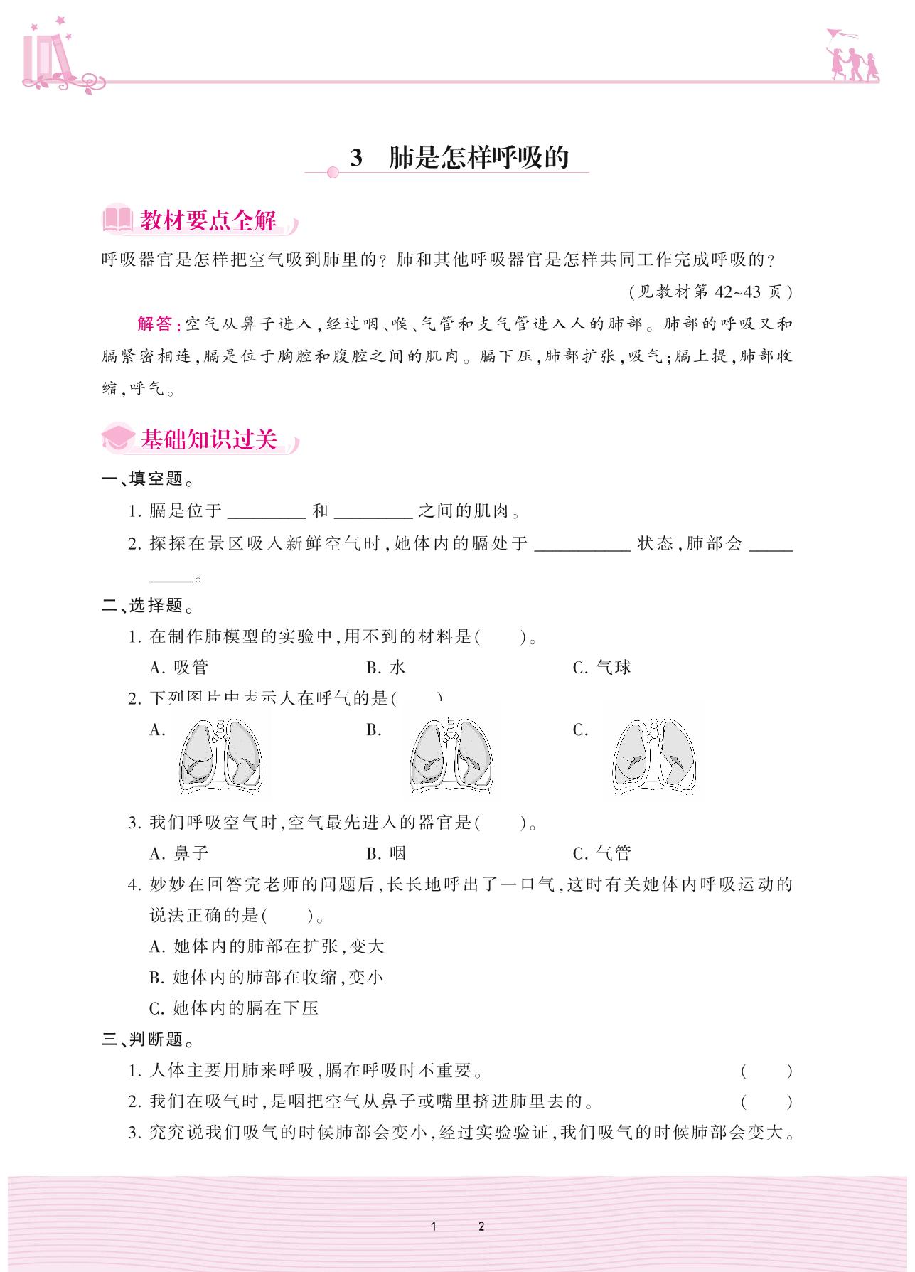 2020上册四年级科学大象版 第四单元 人体的呼吸器官——3 肺是怎样呼吸的
