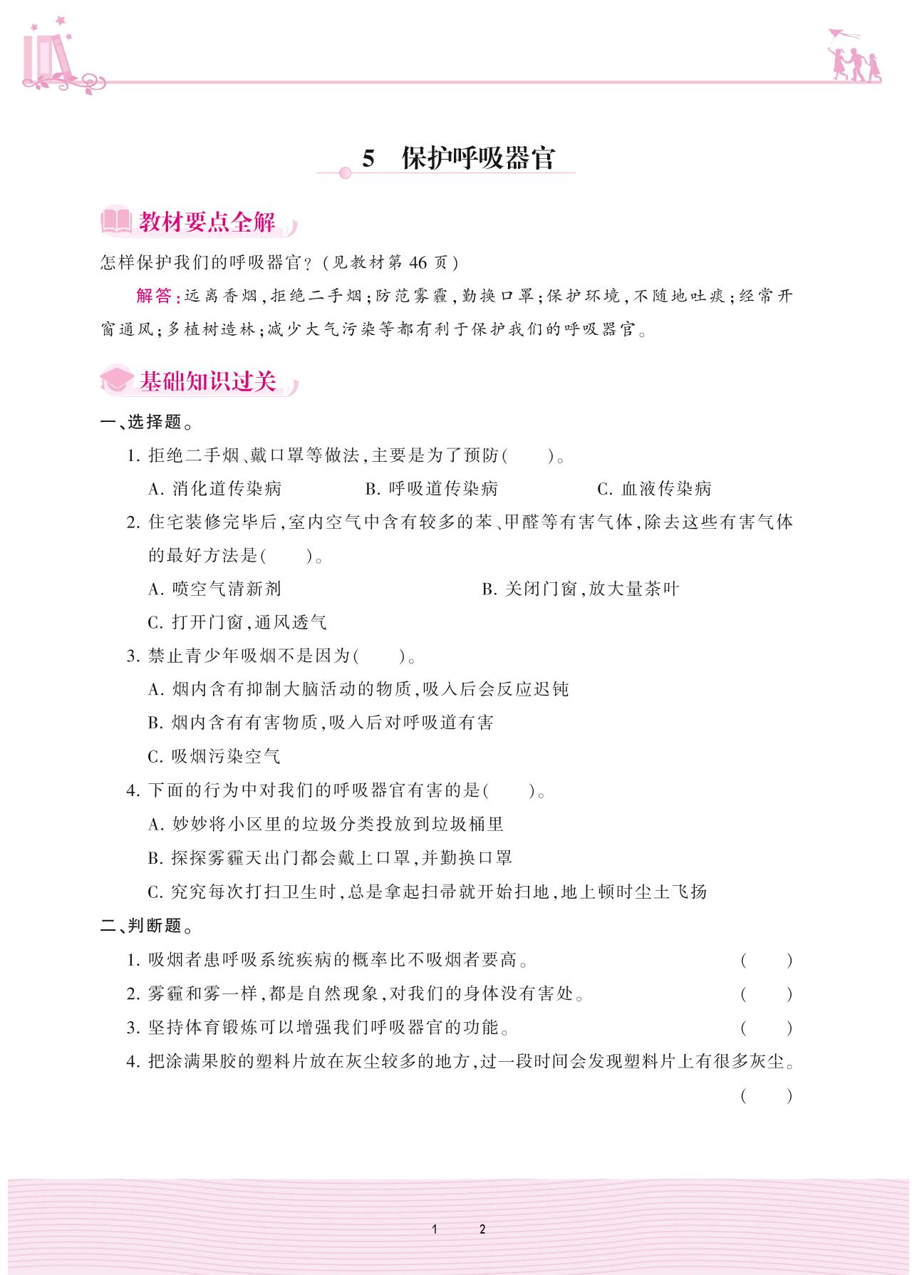 2020上册四年级科学大象版 第四单元 人体的呼吸器官——5 保护呼吸器官
