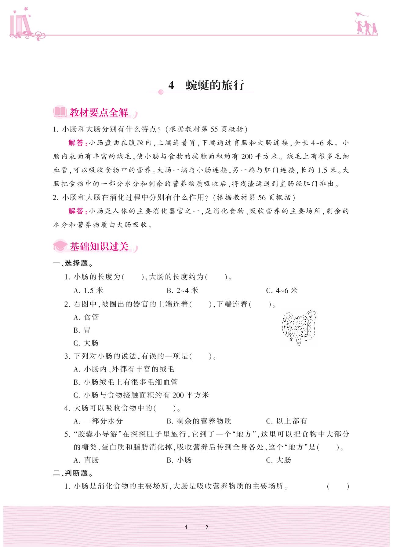 2020上册四年级科学大象版 第五单元 人体的消化器官——4 蜿蜒的旅行