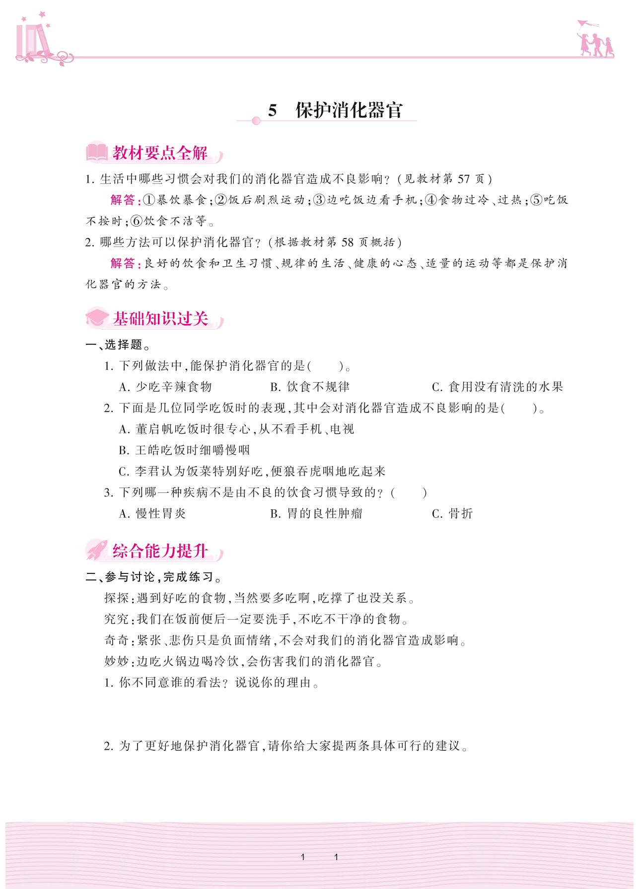 2020上册四年级科学大象版 第五单元 人体的消化器官——5 保护消化器官