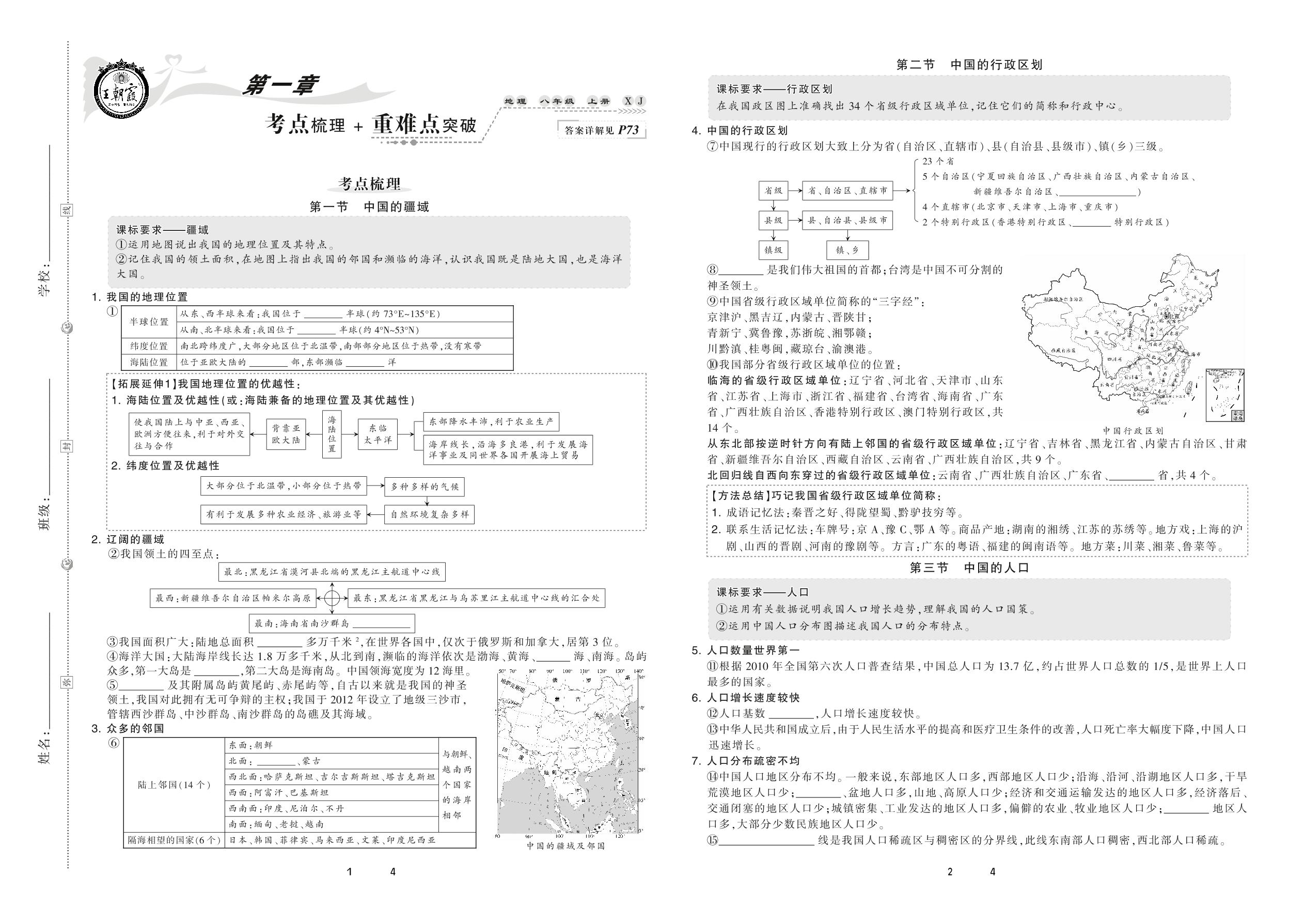 2020上册八年级地理湘教版 第一章 考点梳理+重难点突破