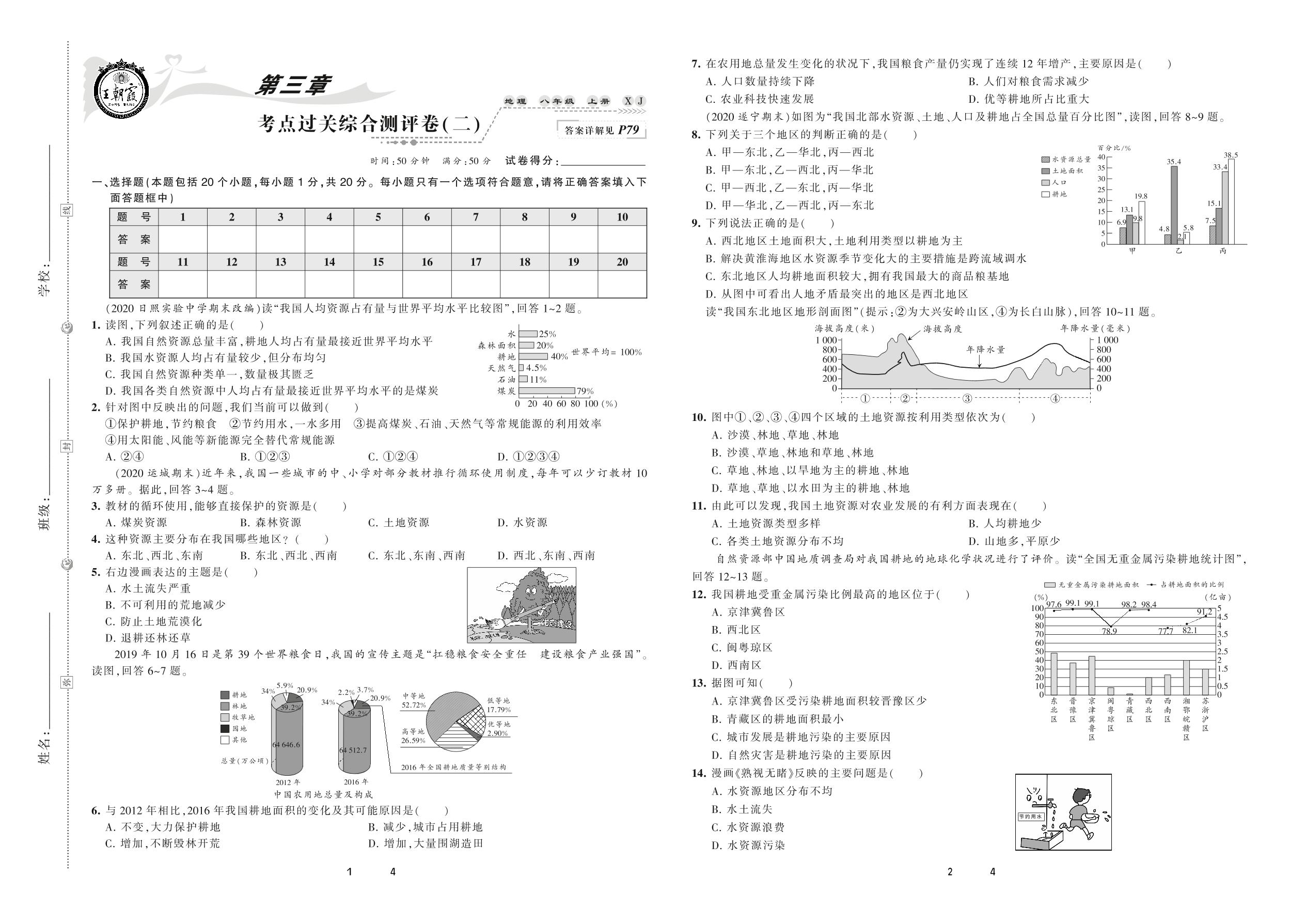 2020上册八年级地理湘教版 第三章 考点过关综合测评卷(二)