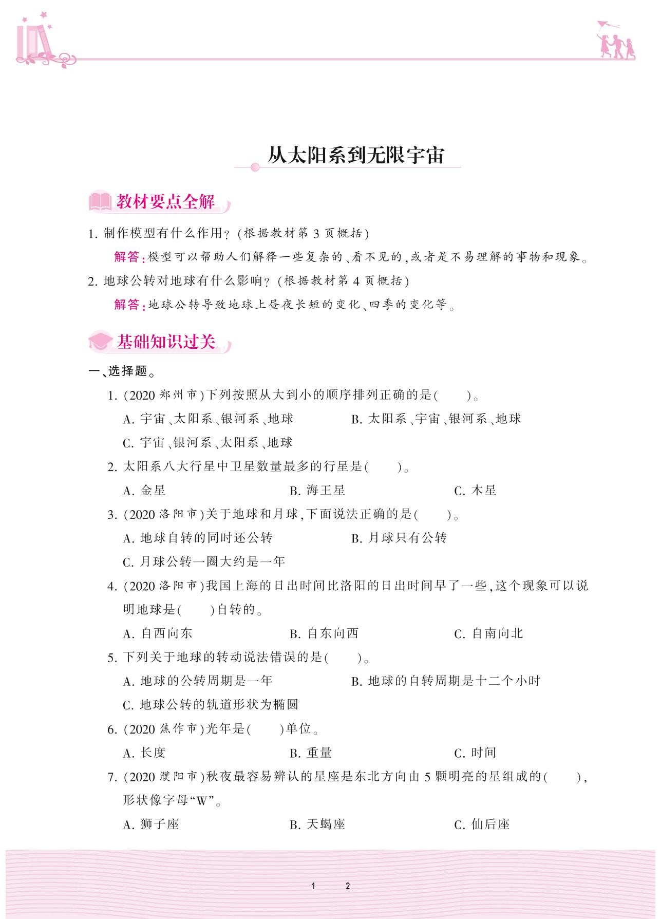 2020上册五年级科学大象版 第一单元——从太阳系到无限宇宙
