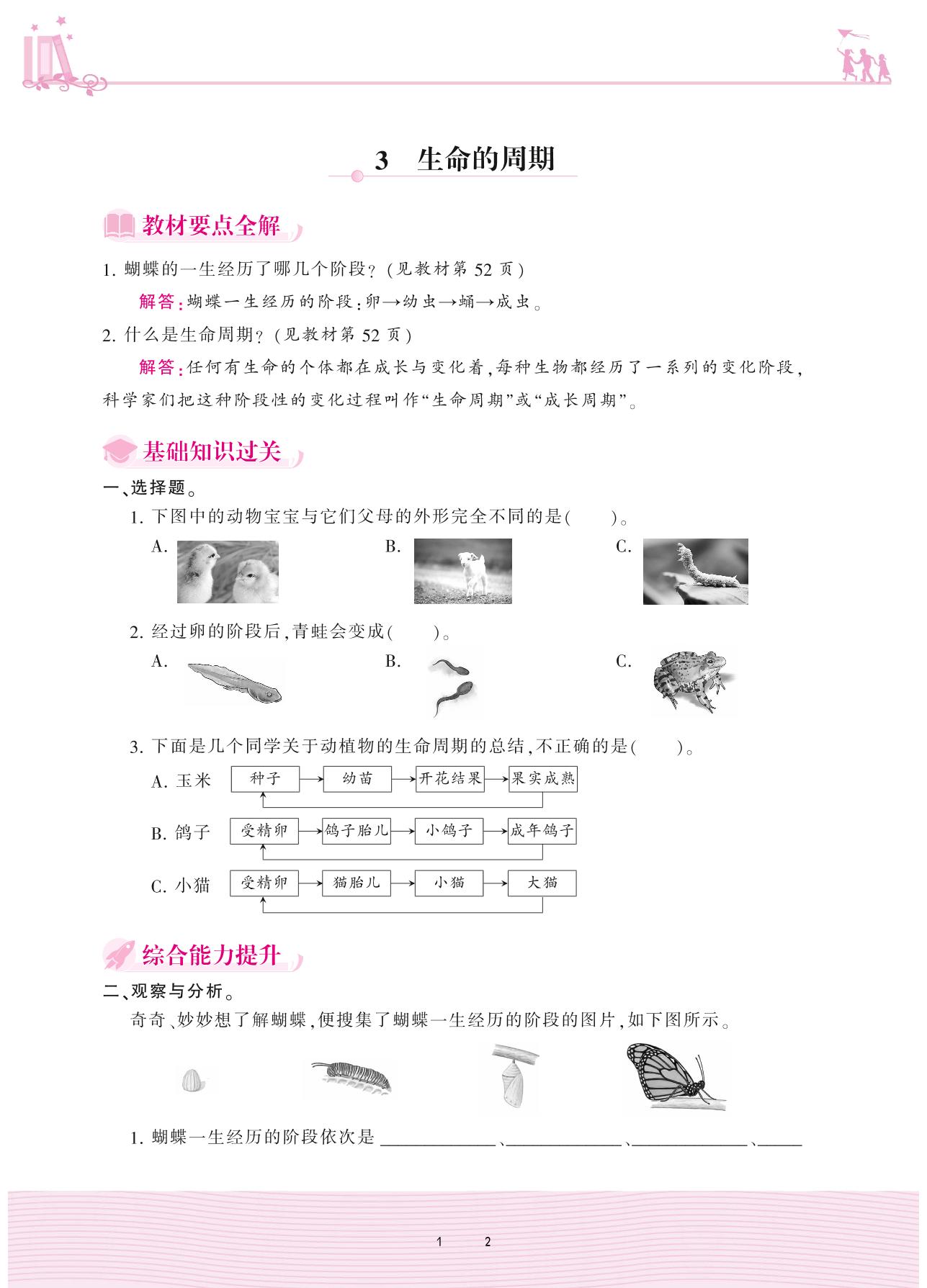 2020上册五年级科学大象版 第四单元 生命的旅程——3 生命的周期