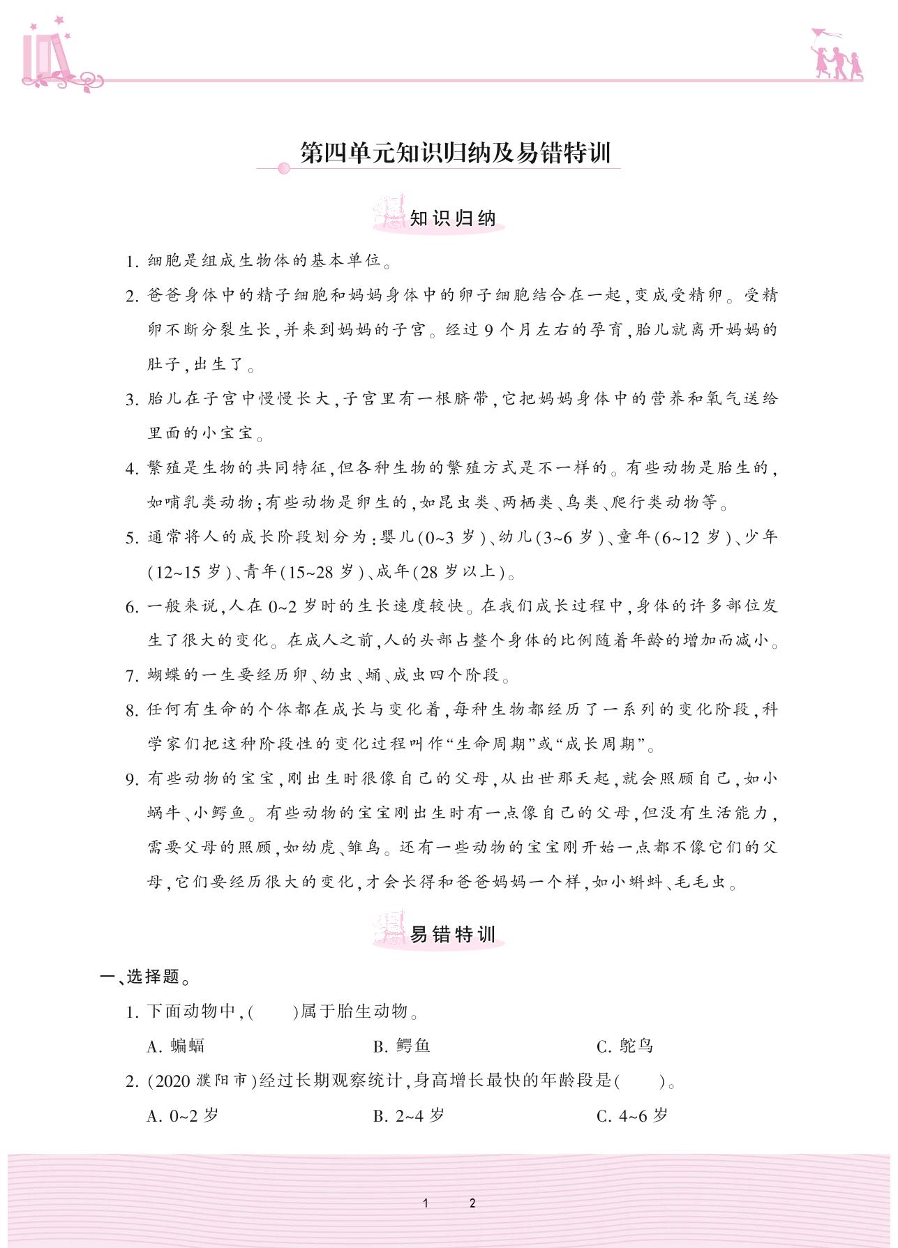 2020上册五年级科学大象版 第四单元知识归纳及易错特训