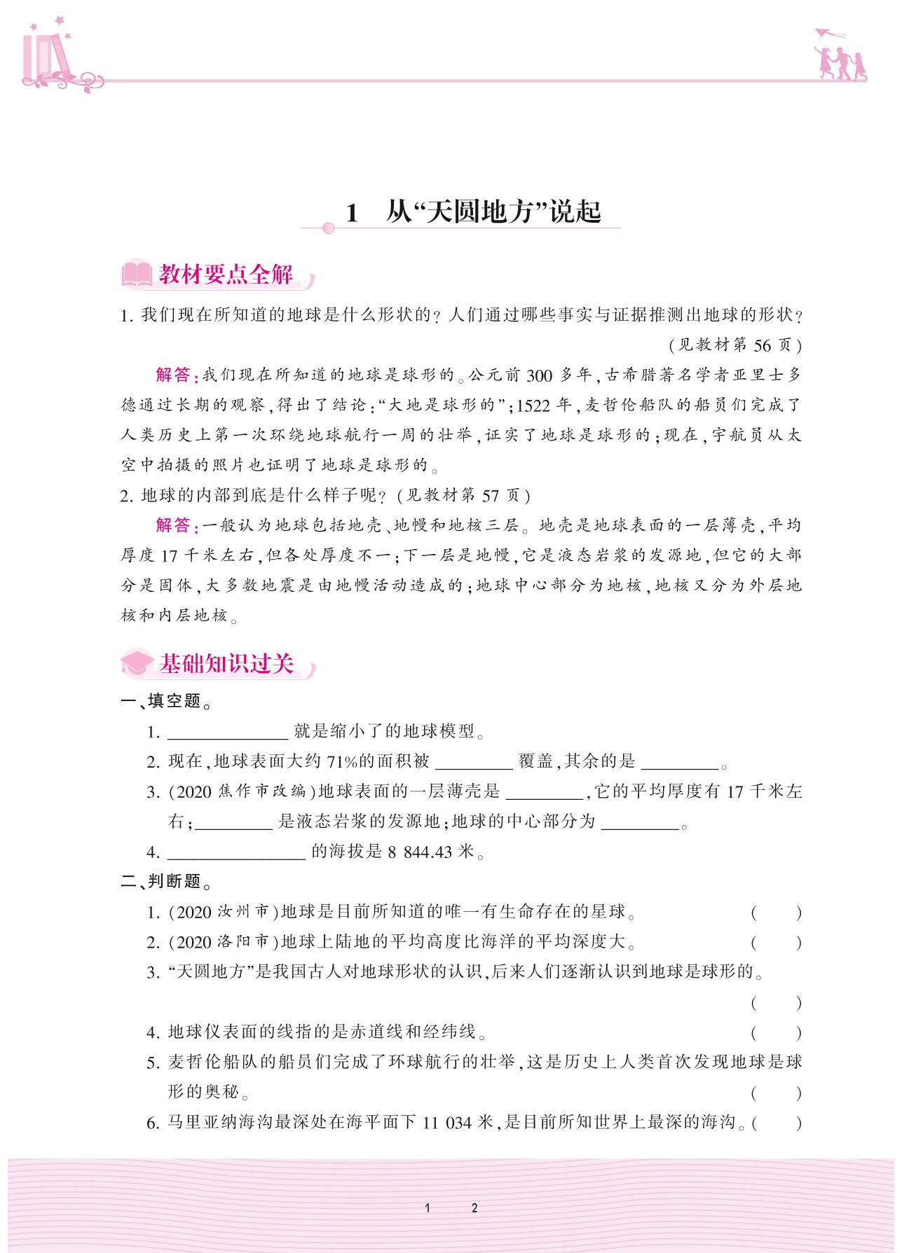 2020上册五年级科学大象版 第五单元 地球在“变脸”——1 从“天圆地方”说起