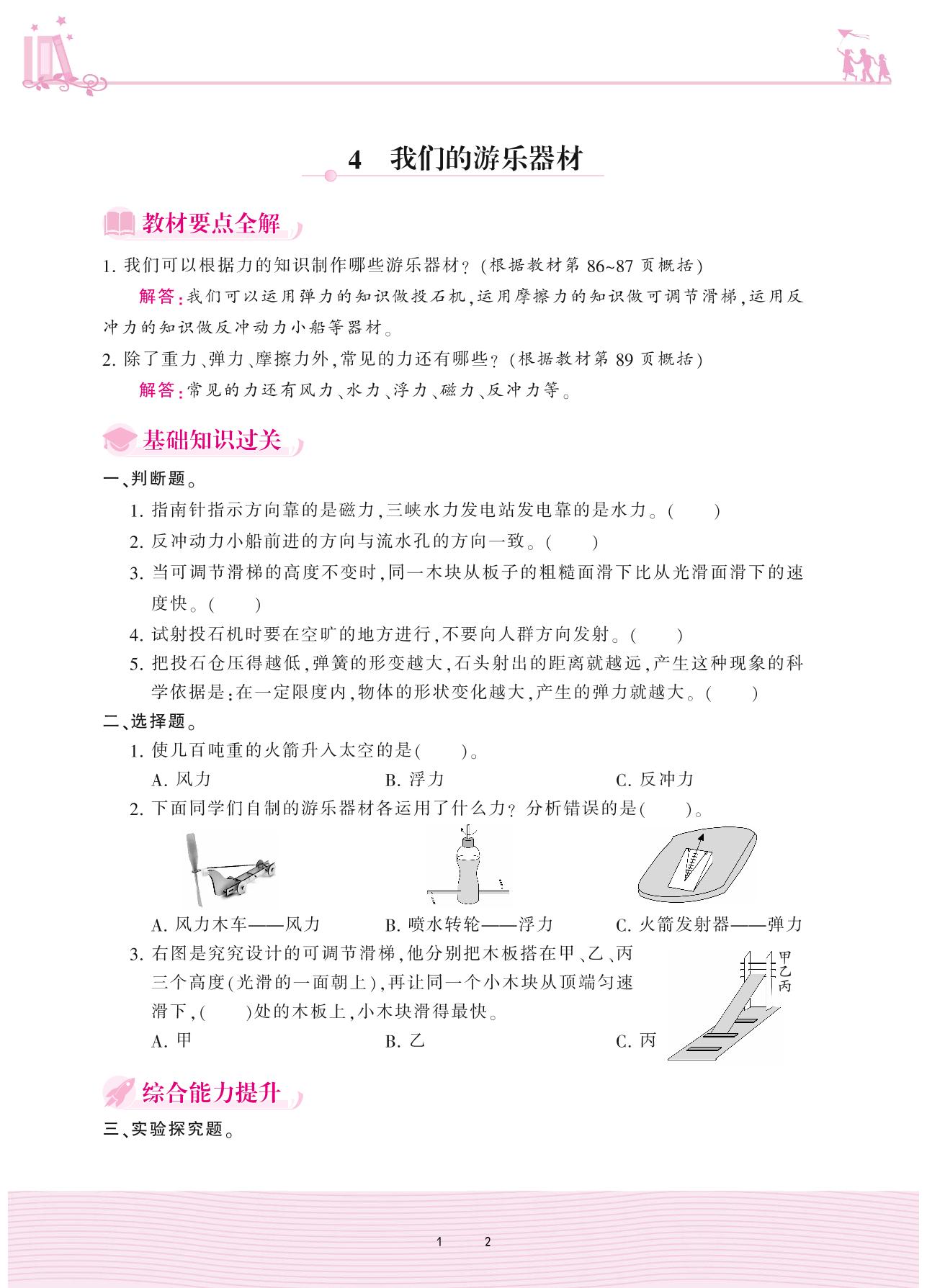 2020上册五年级科学大象版 第六单元 开心游乐场——4 我们的游乐器材