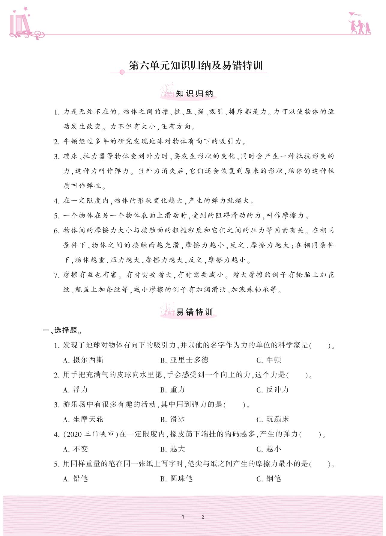 2020上册五年级科学大象版 第六单元知识归纳及易错特训