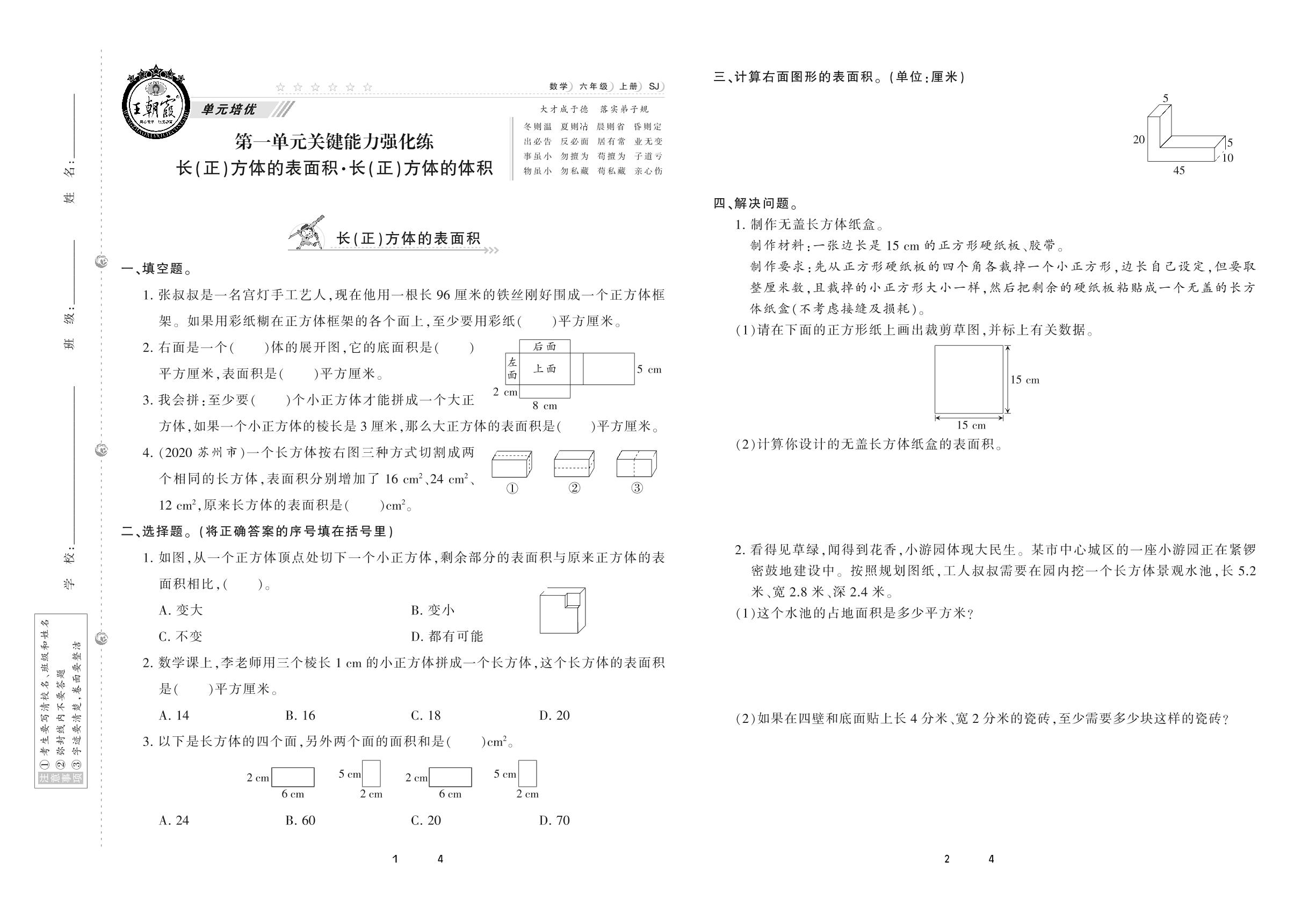 2020上册六年级数学苏教版 第一单元 关键能力强化练