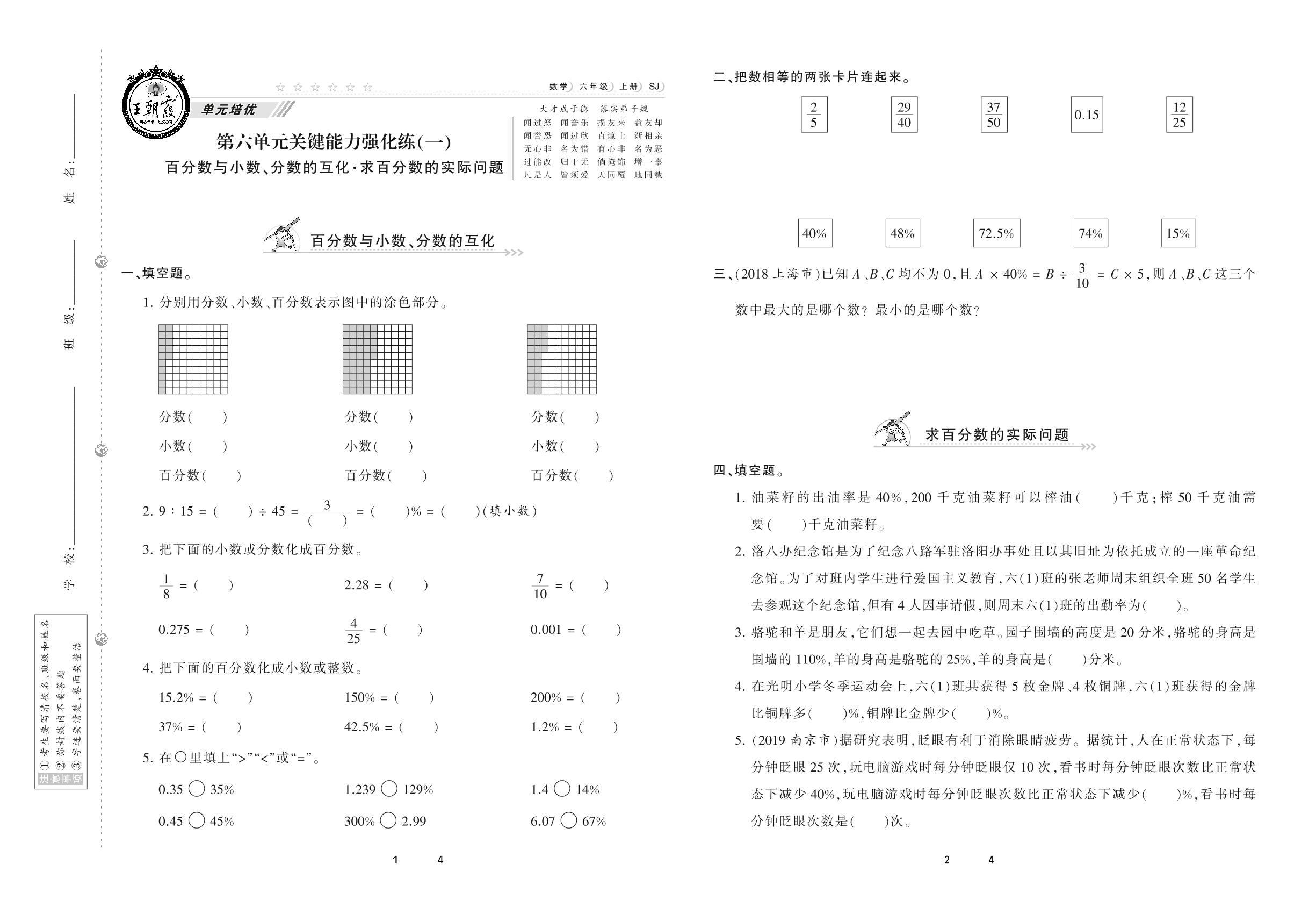 2020上册六年级数学苏教版 第六单元 关键能力强化练(一)