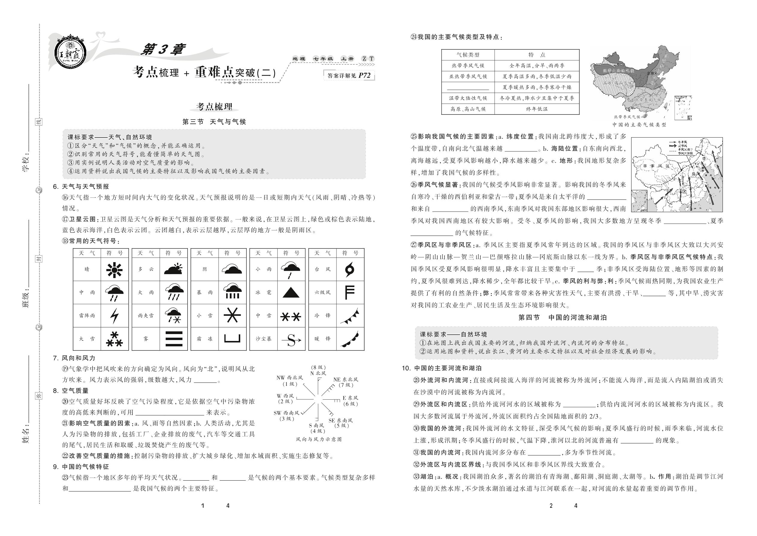 2020上册七年级地理中图版 第3章 考点梳理+重难点突破(二)
