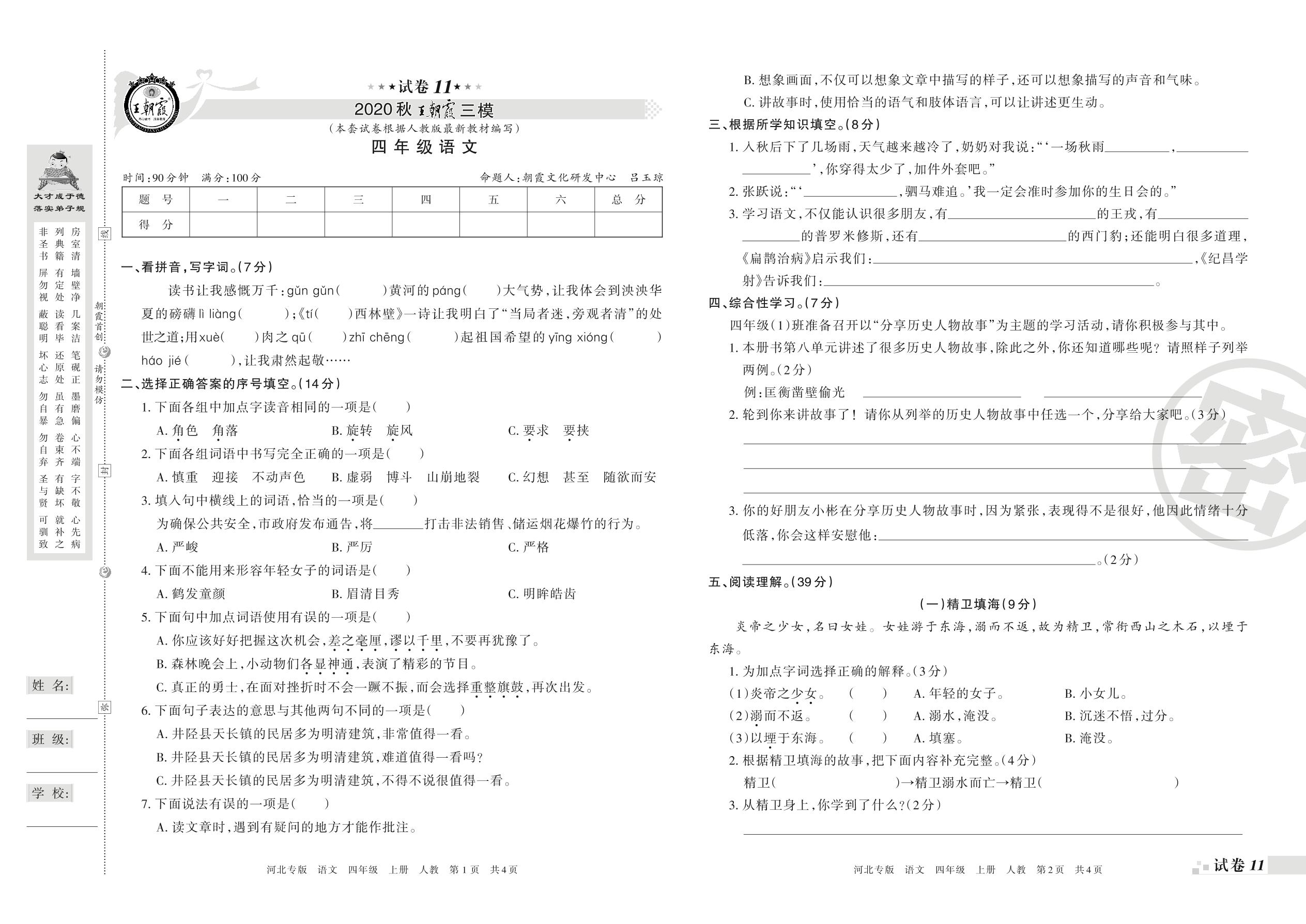 王朝霞期末模拟卷四年级上册语文(人教版)_R210801185023【11】