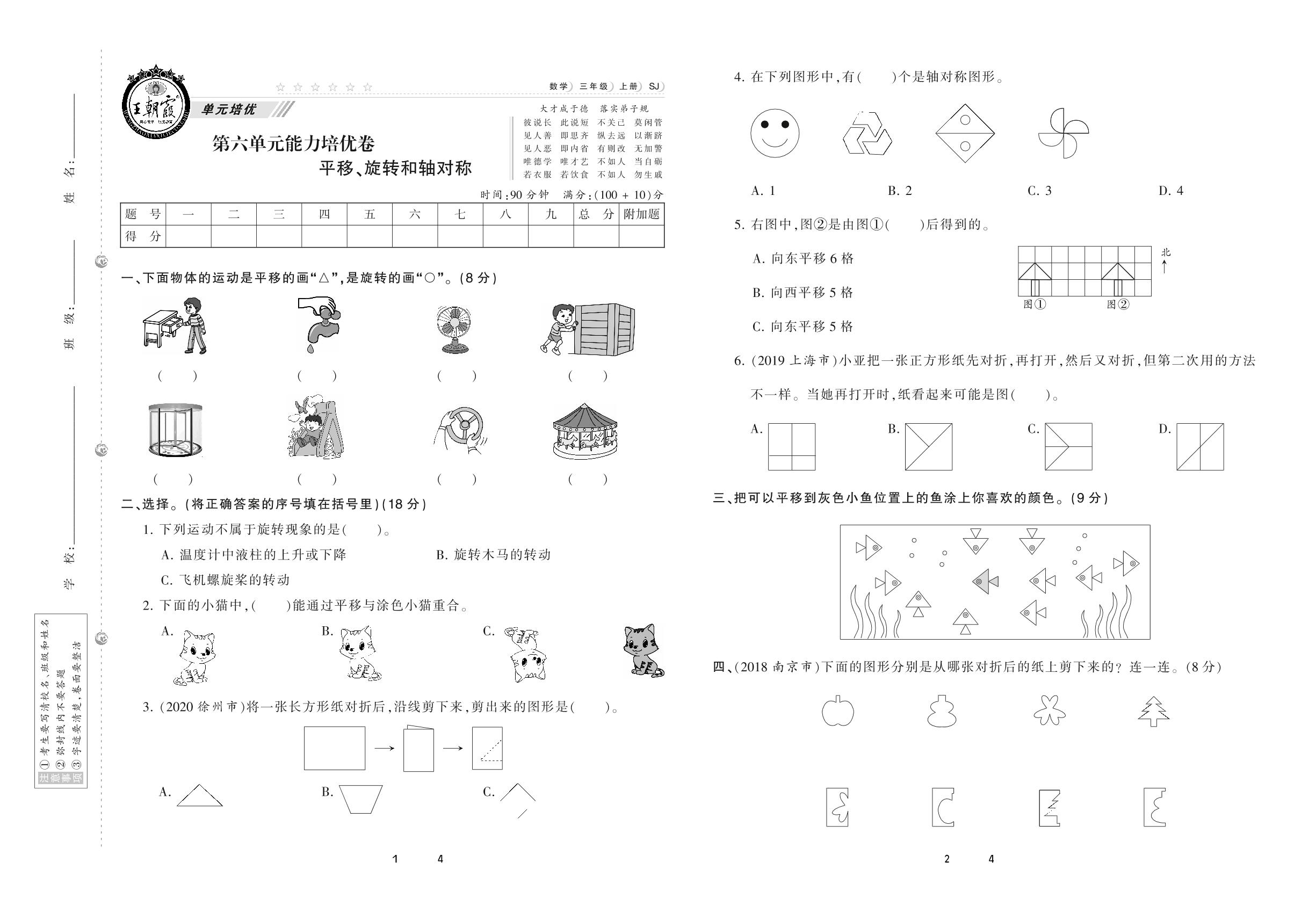 2020上册三年级数学苏教版 第六单元 能力培优卷