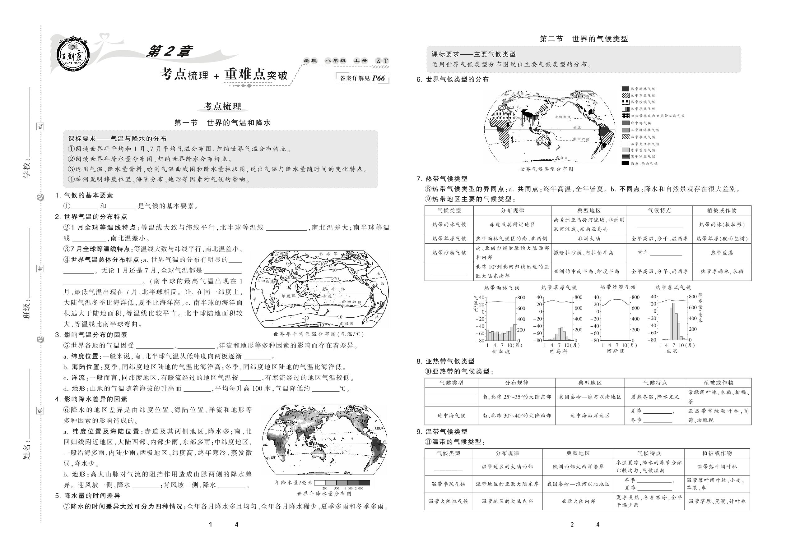 2020上册八年级地理中图版 第2章 考点梳理+重难点突破