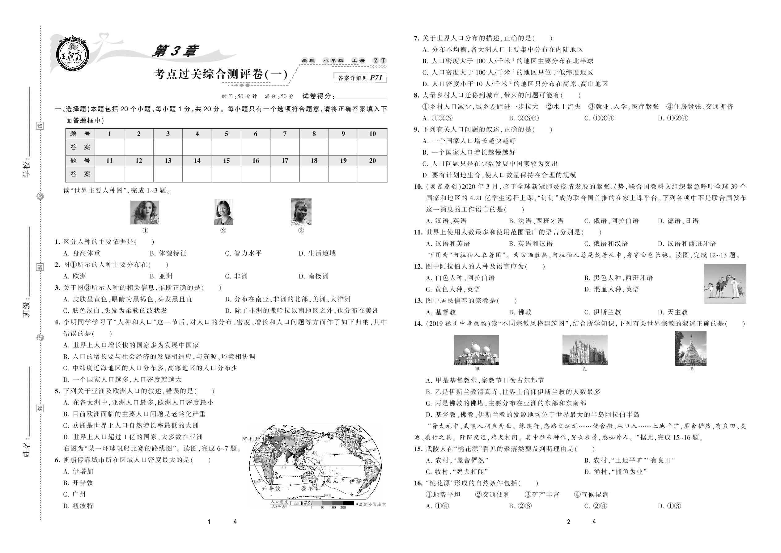 2020上册八年级地理中图版 第3章 考点过关综合测评卷(一)