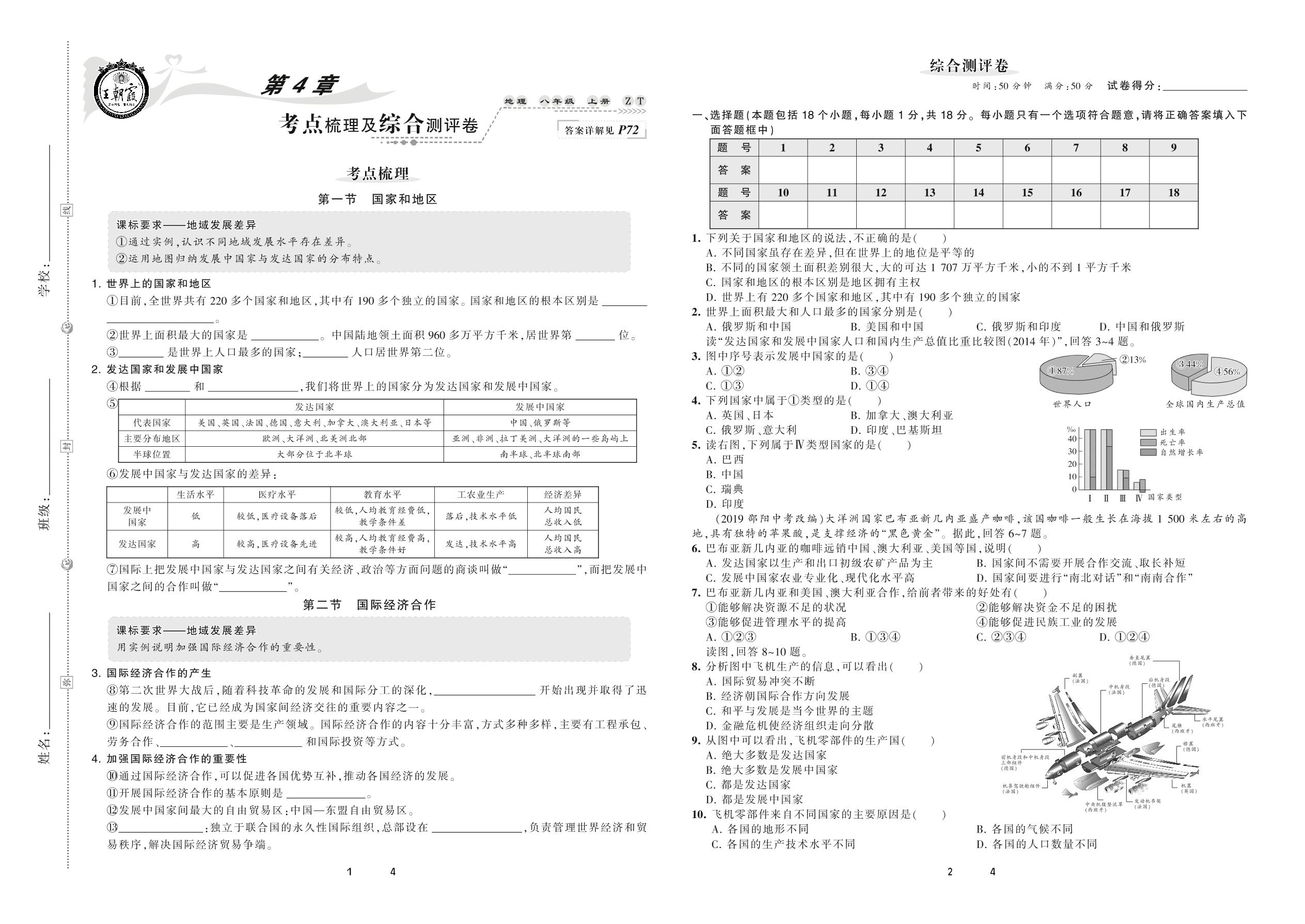 2020上册八年级地理中图版 第4章 考点梳理及综合测评卷