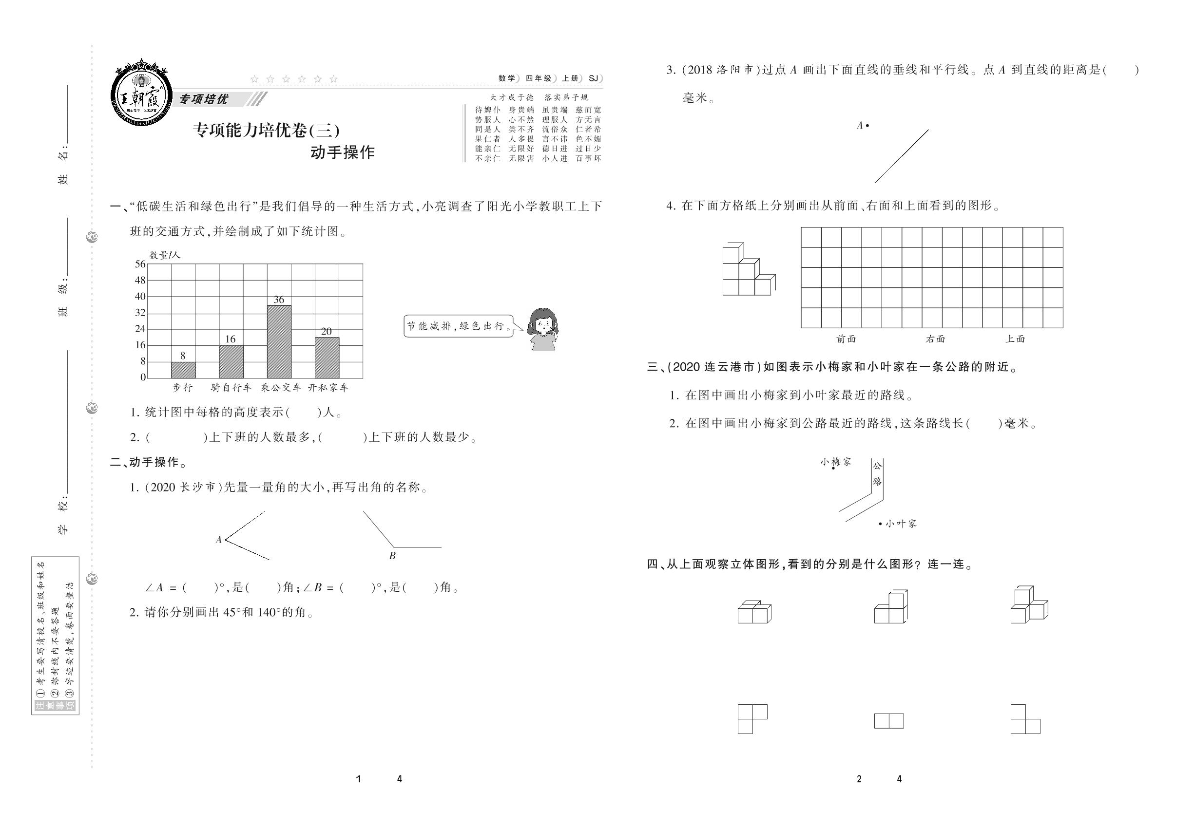 2020上册四年级数学苏教版 专项能力培优卷(三)动手操作