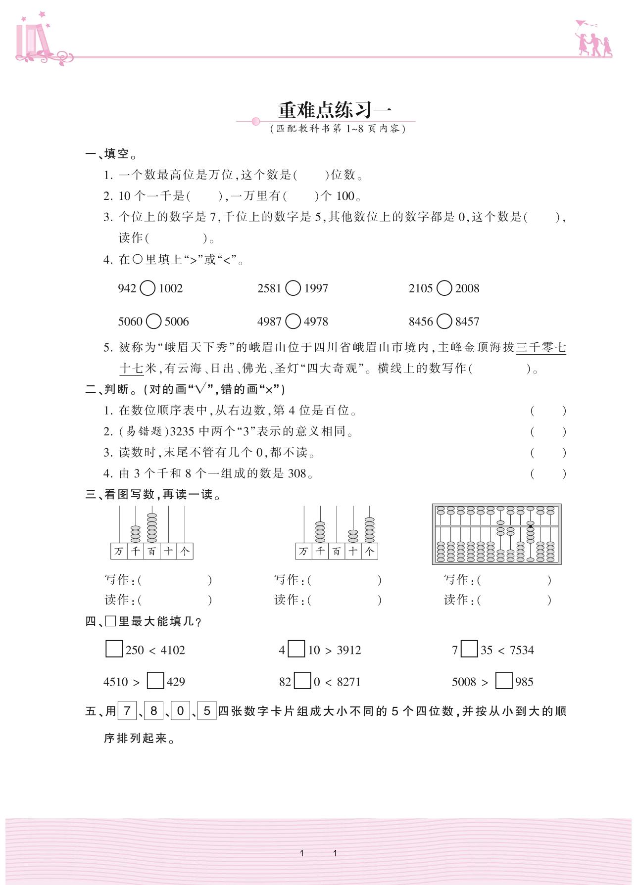 2020上册三年级数学冀教版 一 生活中的大数——重难点练习一