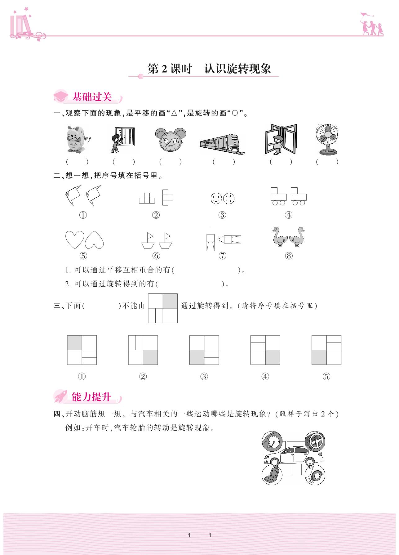 2020上册三年级数学冀教版 三 图形的运动(一)——第2课时 认识旋转现象