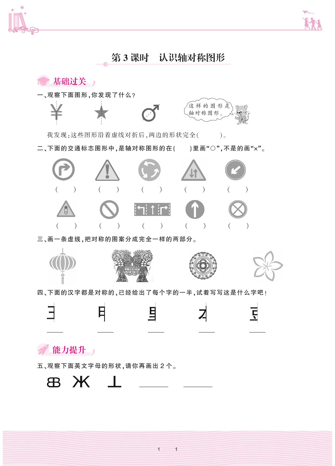2020上册三年级数学冀教版 三 图形的运动(一)——第3课时 认识轴对称图形