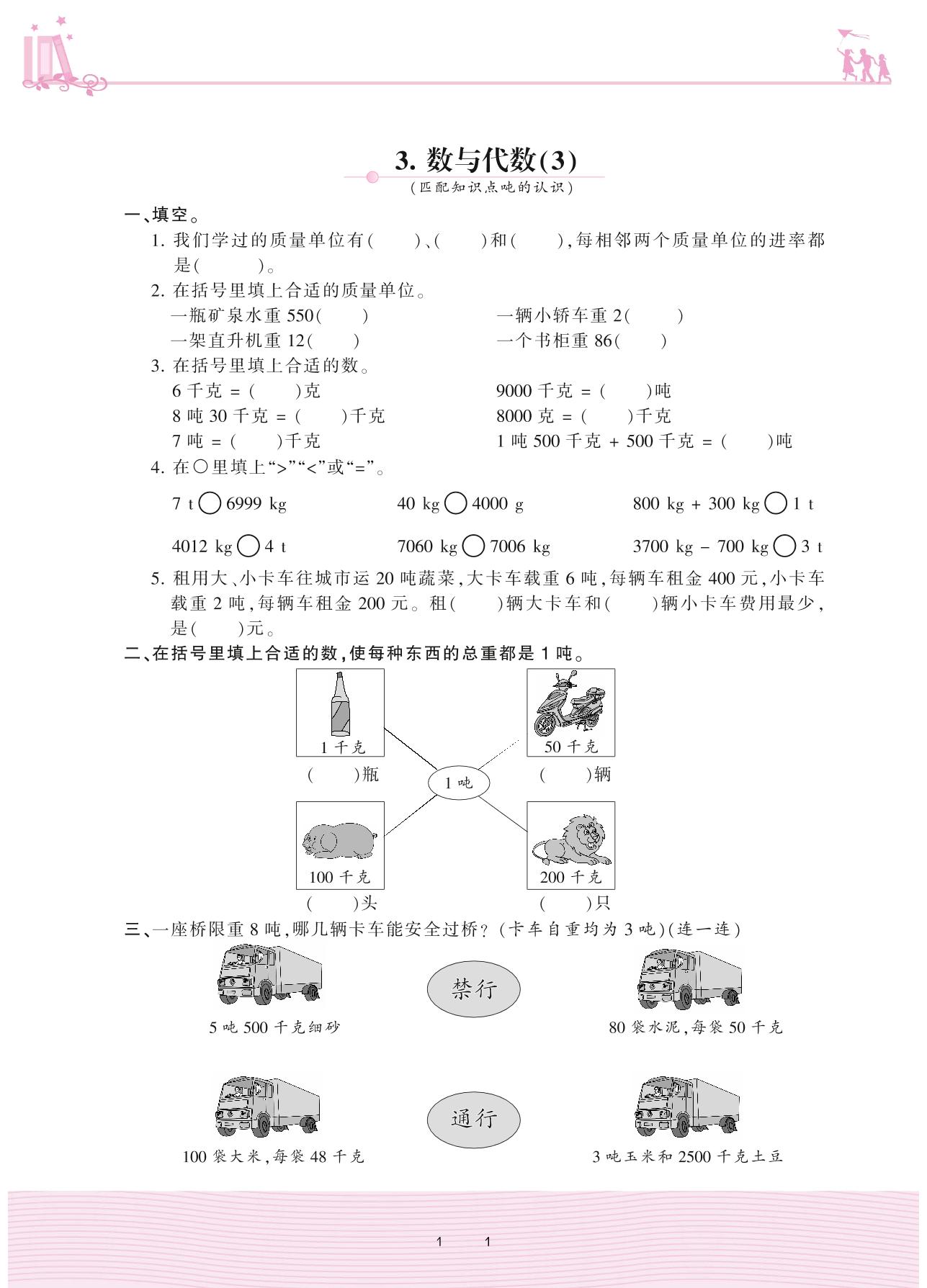 2020上册三年级数学冀教版 整理与评价——3. 数与代数(3)