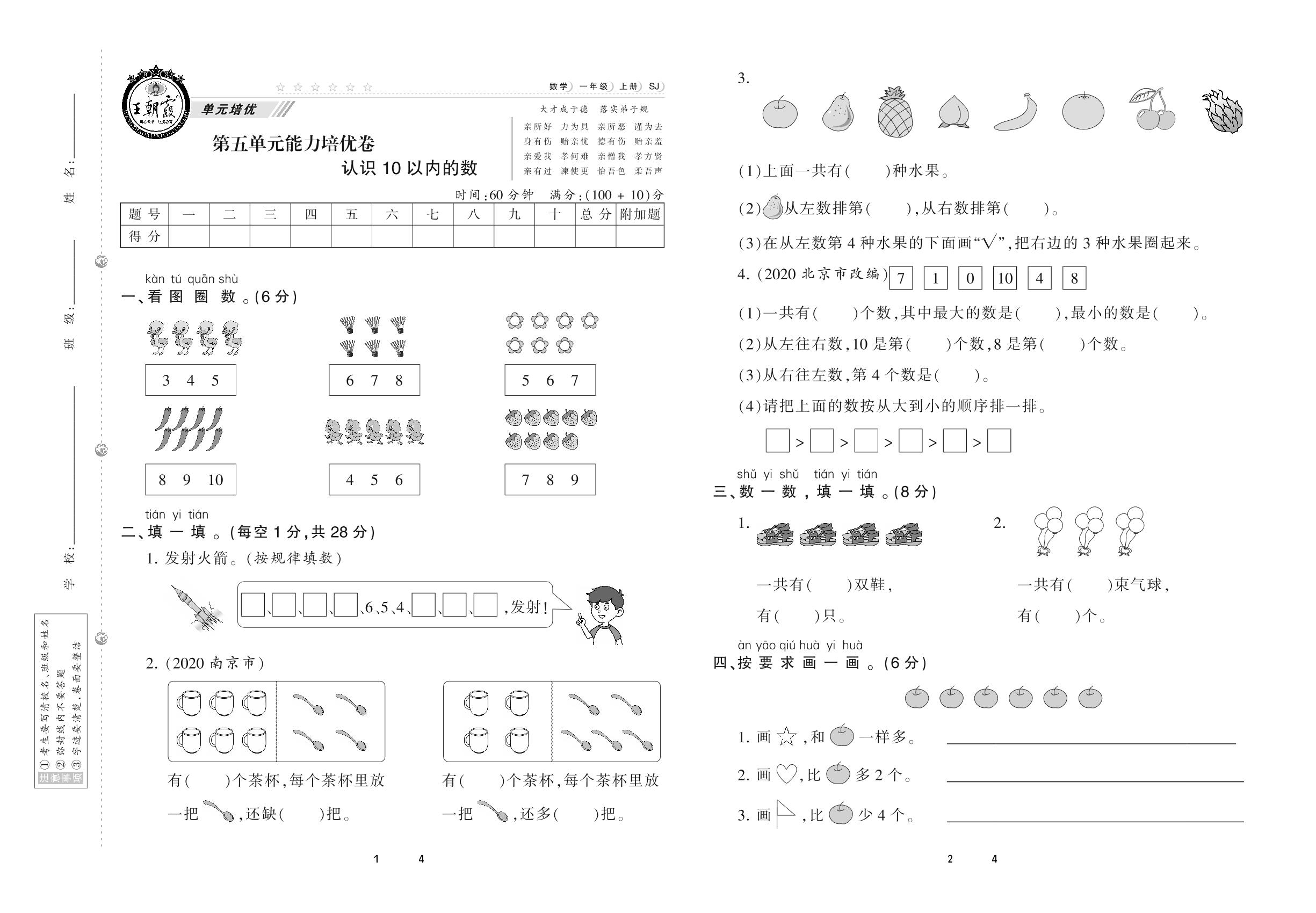 2020上册一年级数学苏教版 第五单元 能力培优卷