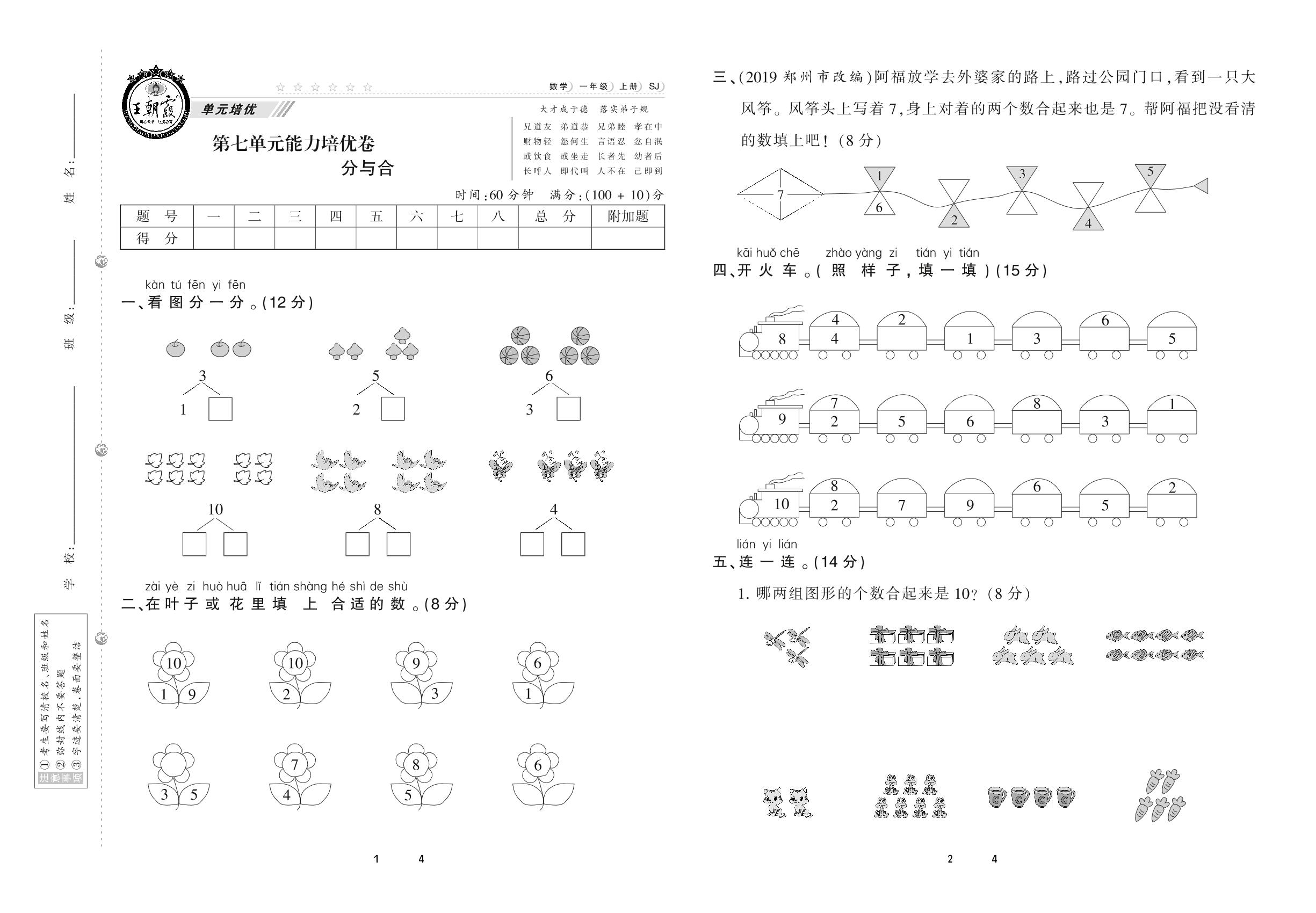 2020上册一年级数学苏教版 第七单元 能力培优卷