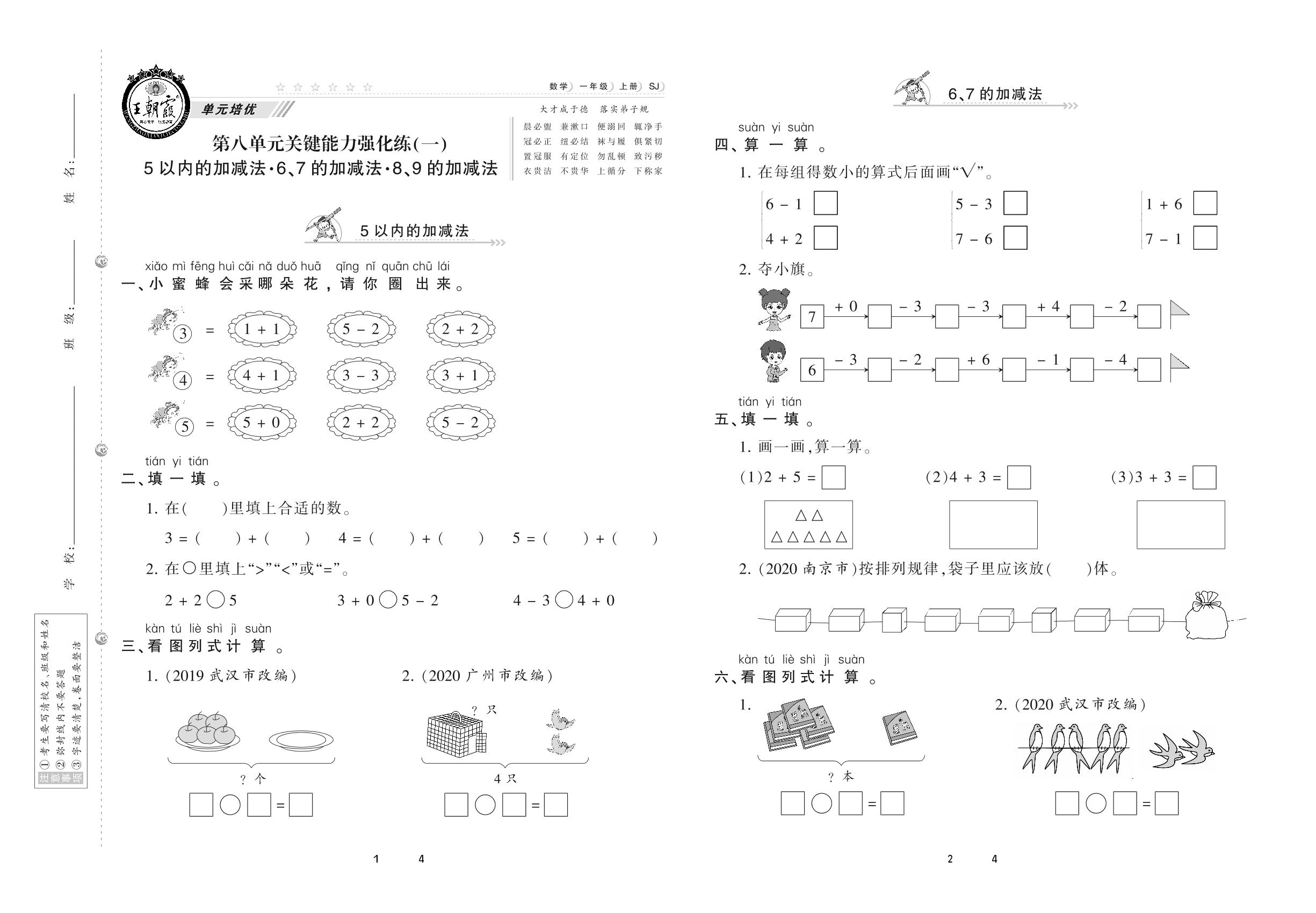 2020上册一年级数学苏教版 第八单元 关键能力强化练(一)