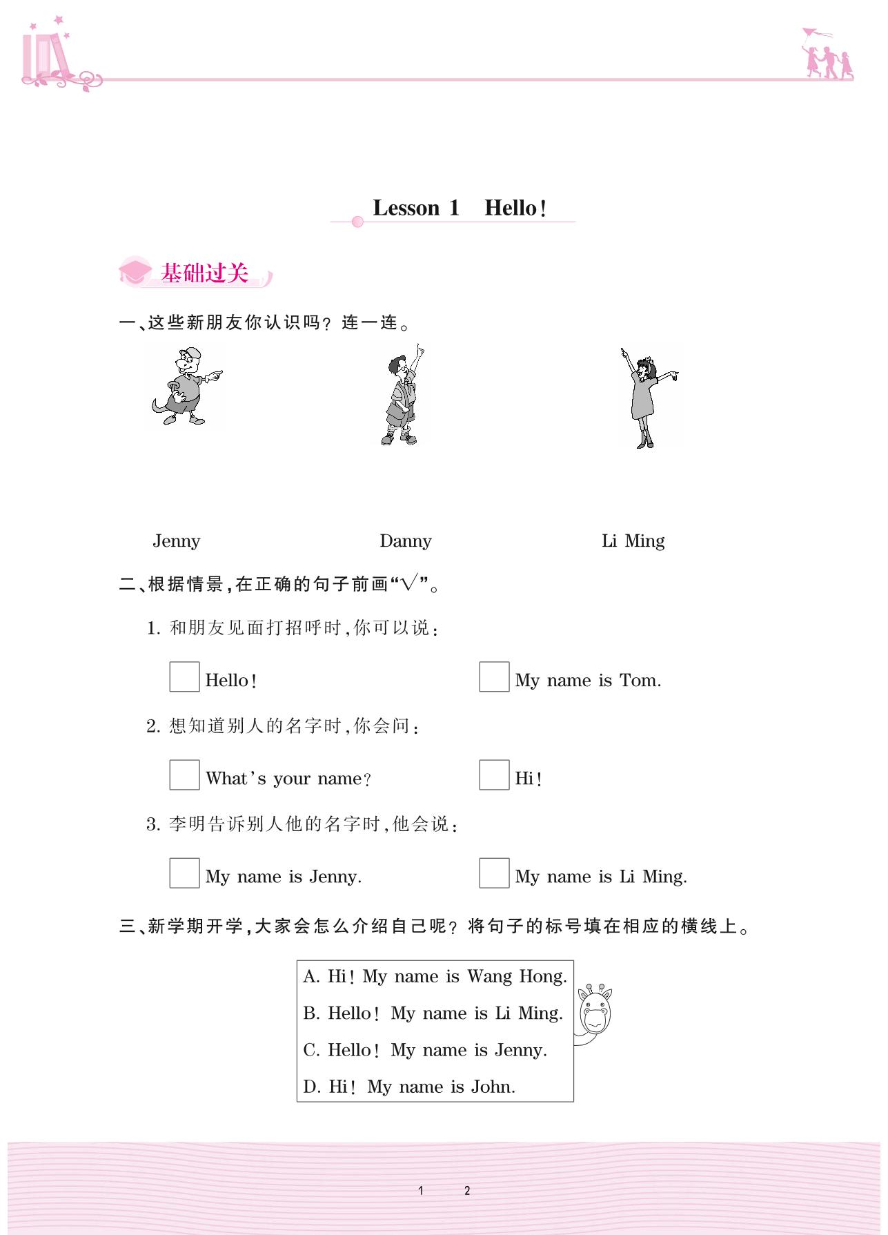 2020上册三年级英语冀教版 Unit 1—Lesson 1 Hello!