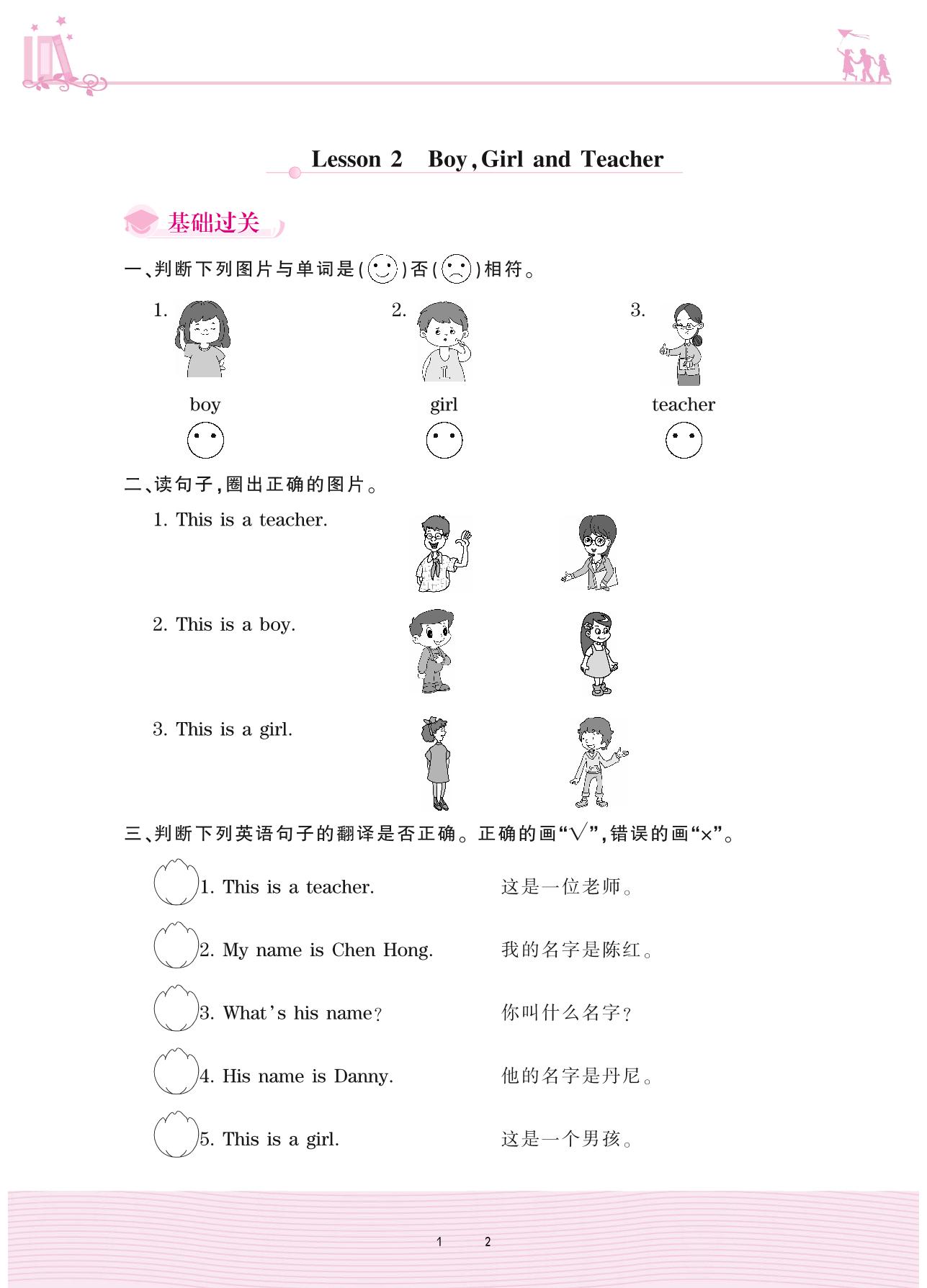 2020上册三年级英语冀教版 Unit 1—Lesson 2 Boy,Girl and Teacher