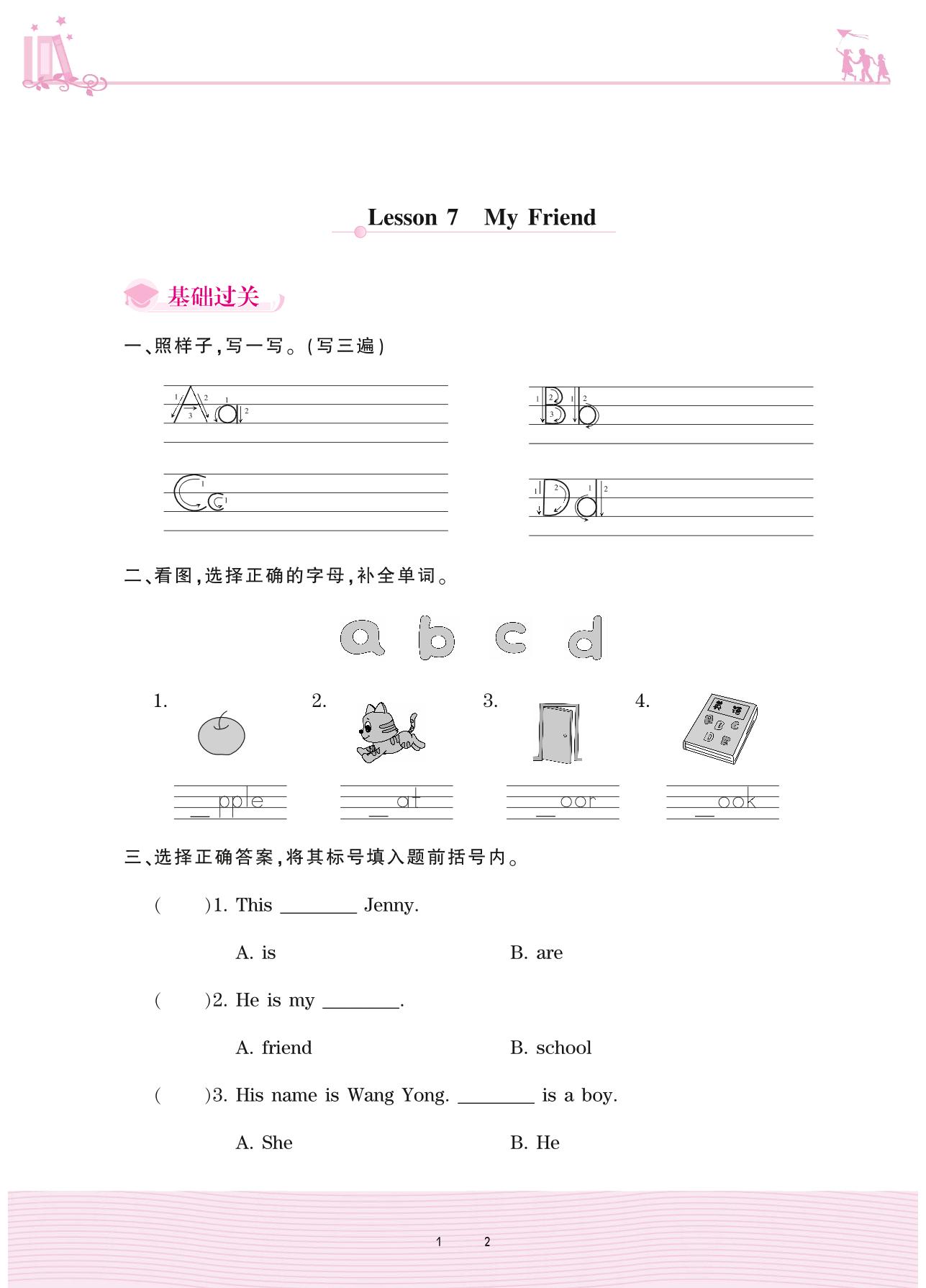 2020上册三年级英语冀教版 Unit 2—Lesson 7 My Friend