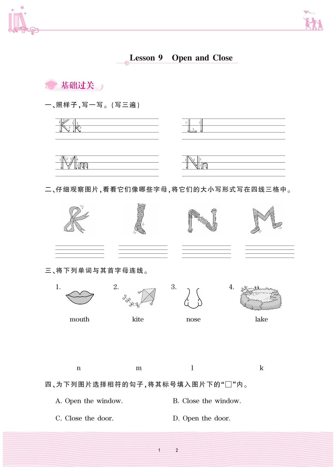 2020上册三年级英语冀教版 Unit 2—Lesson 9 Open and Close