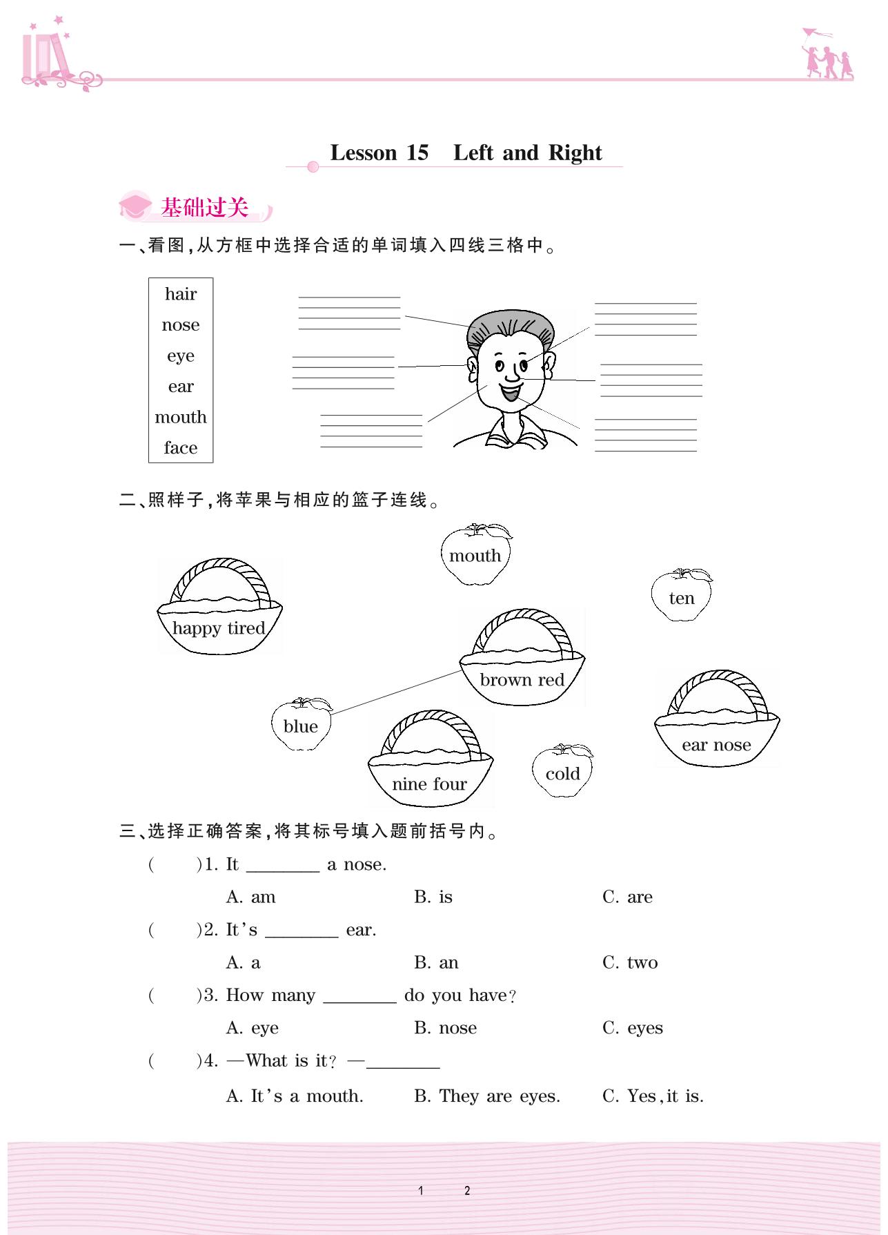 2020上册三年级英语冀教版 Unit 3—Lesson 15 Left and Right
