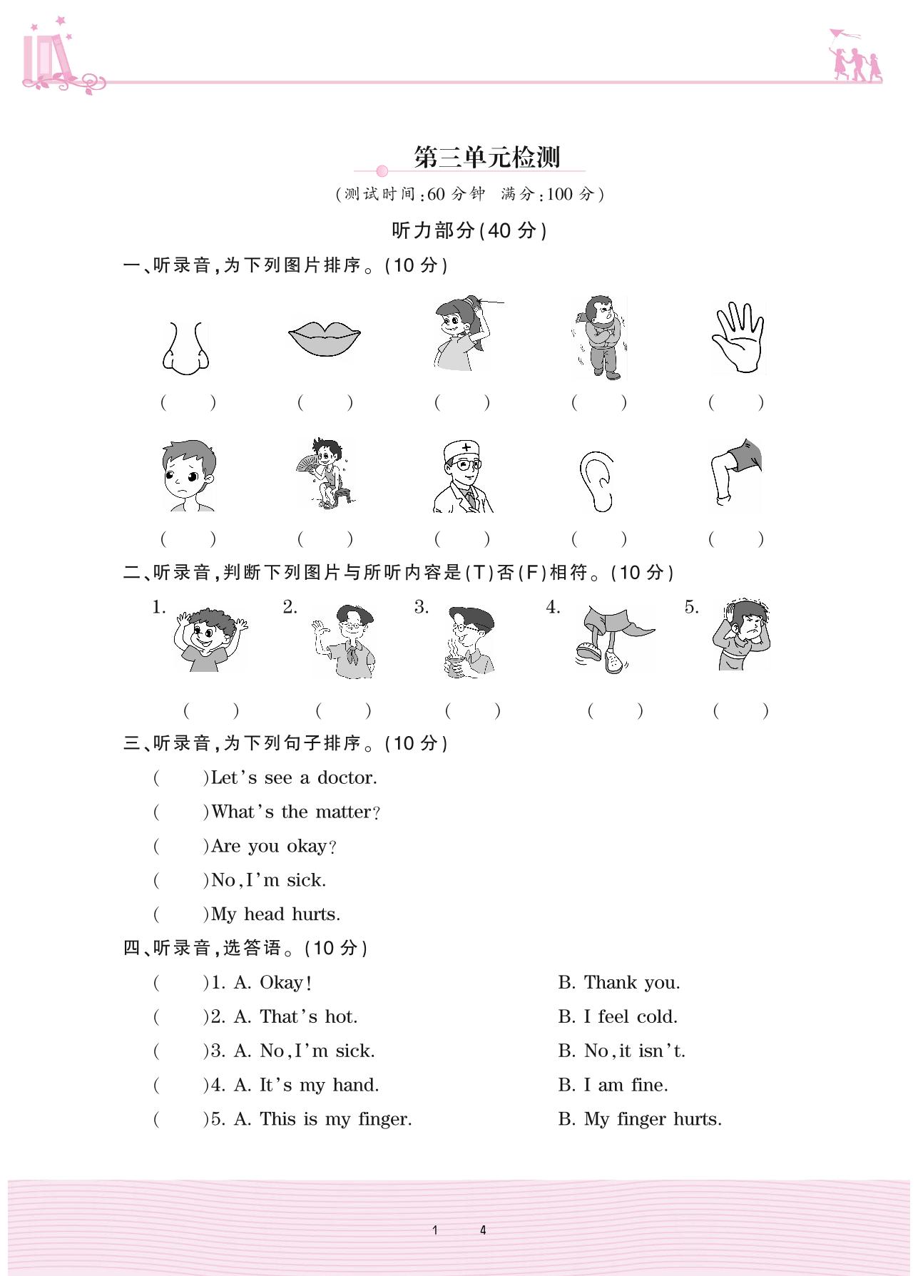 三年级英语冀教版上册单元卷