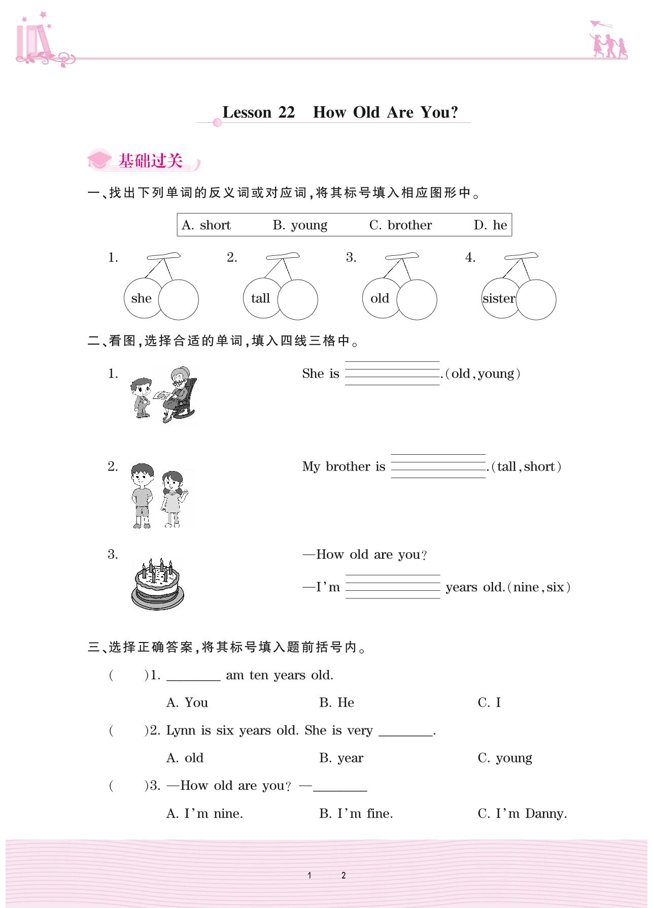 2020上册三年级英语冀教版 Unit 4 Family—Lesson 22 How Old Are You?