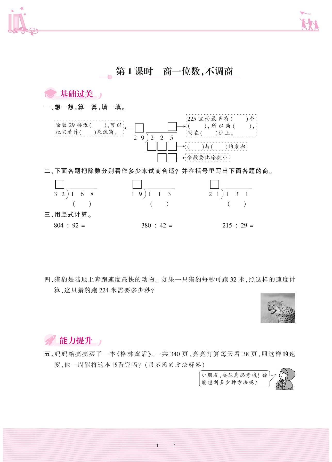 2020上册四年级数学冀教版 二 三位数除以两位数 2. 除以两位数——第1课时 商一位数,不调商