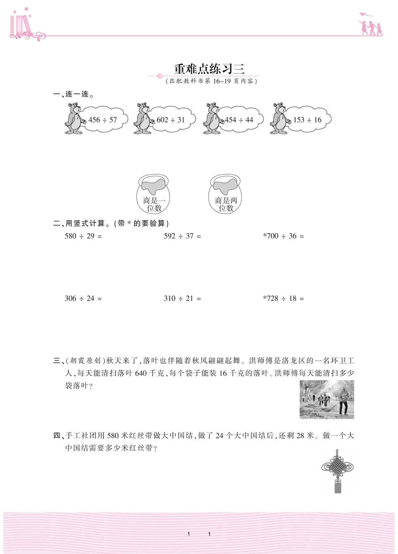 2020上册四年级数学冀教版 二 三位数除以两位数——重难点练习三
