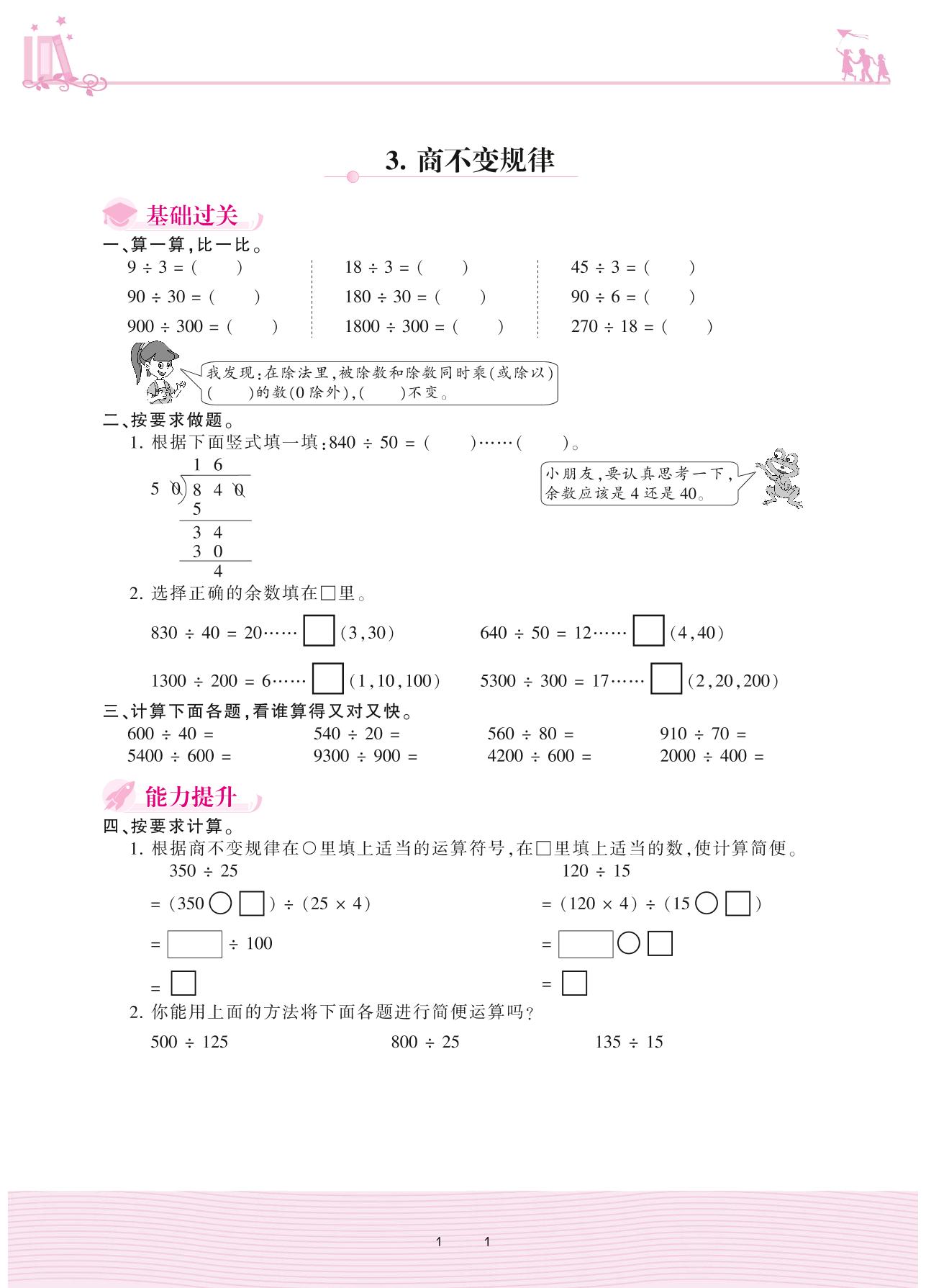 2020上册四年级数学冀教版 二 三位数除以两位数 3. 商不变规律