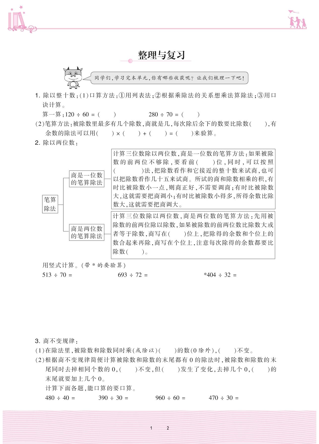 2020上册四年级数学冀教版 二 三位数除以两位数——整理与复习