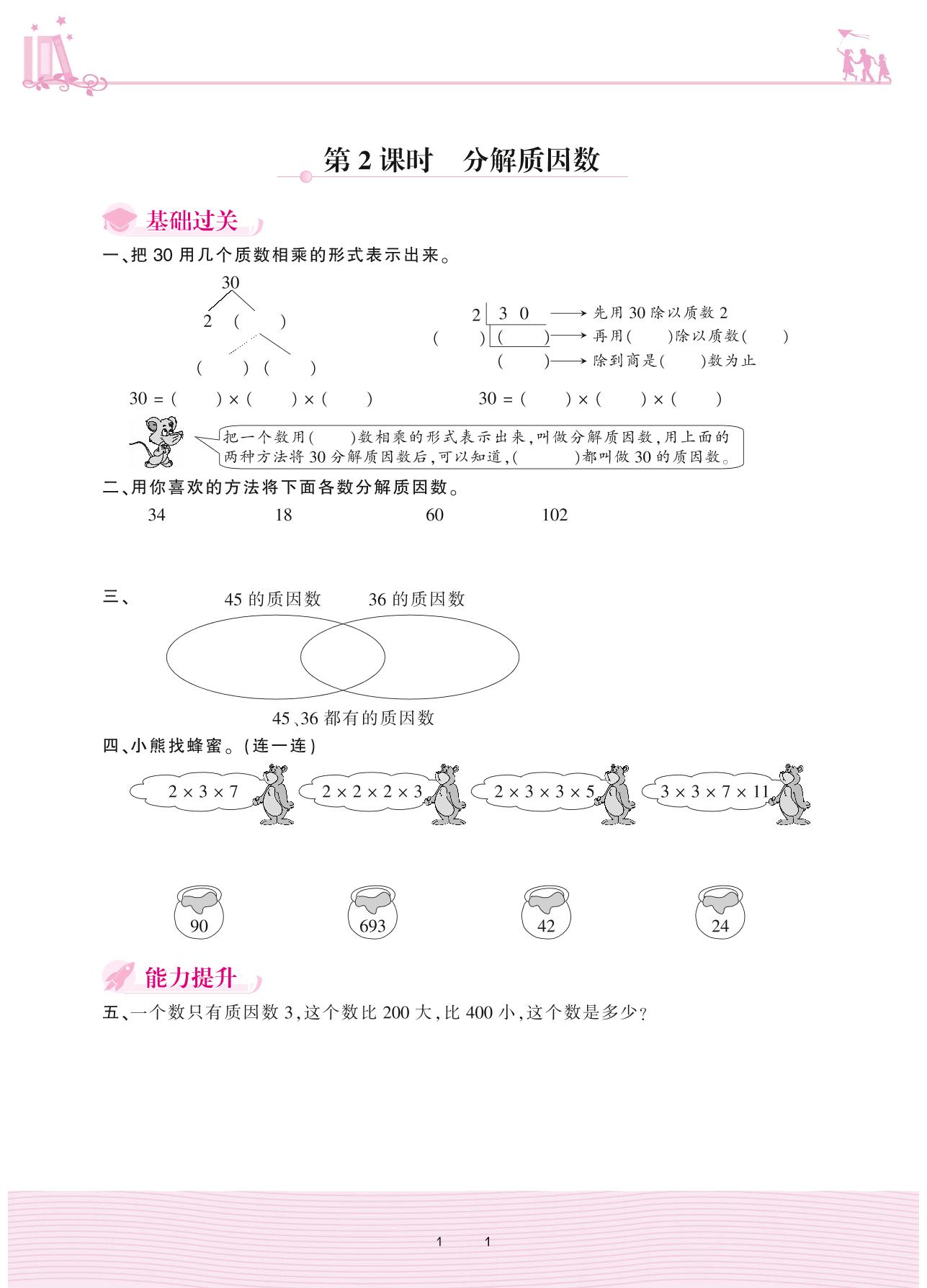 2020上册四年级数学冀教版 五 倍数和因数 4. 因数——第2课时 分解质因数